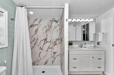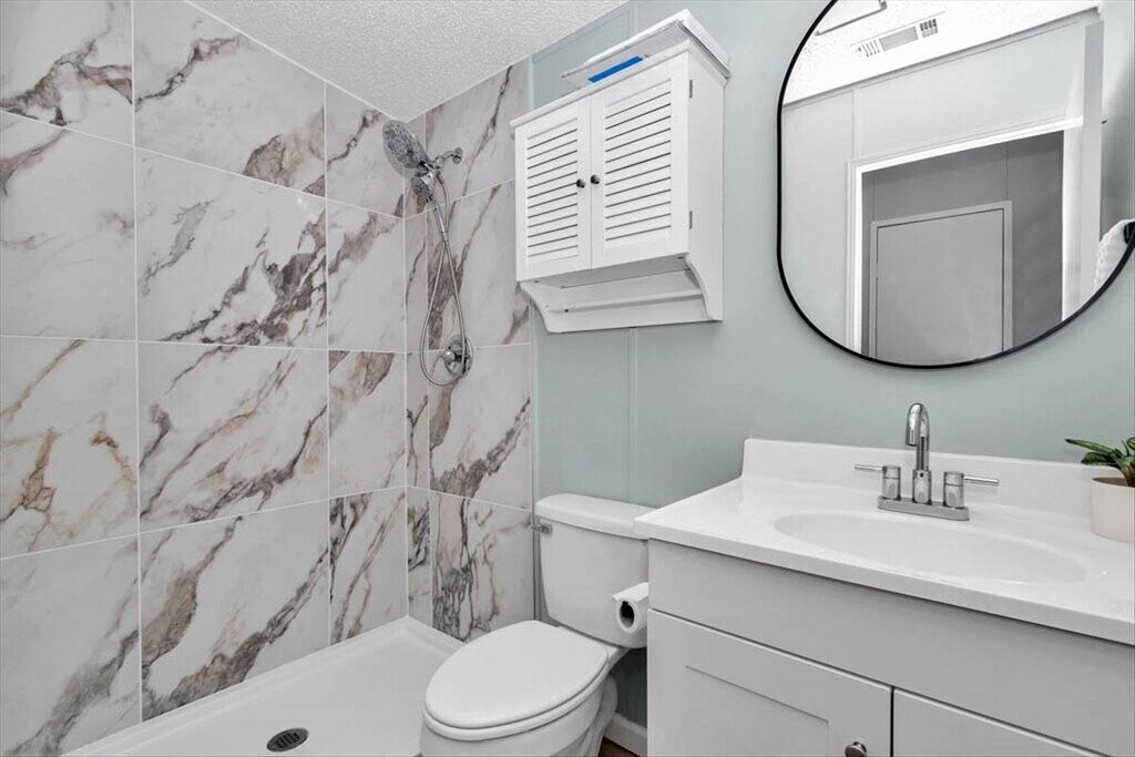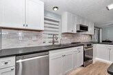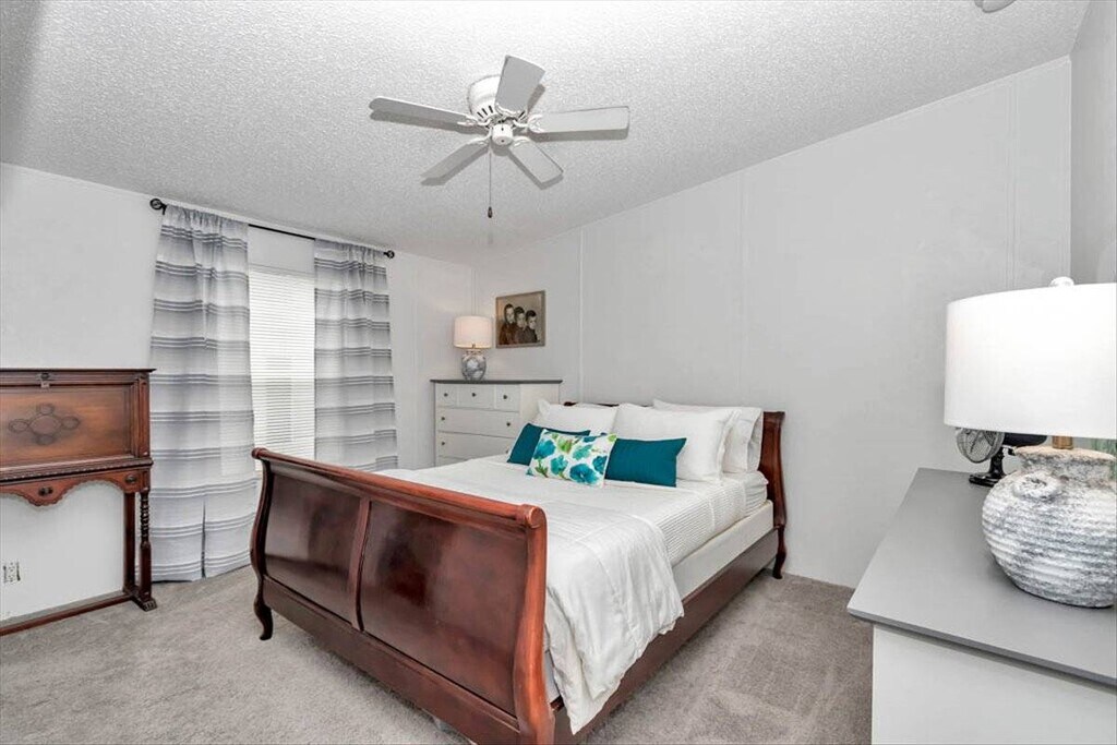 Stylish 3-Bed, 3-Bath Contemporary Home with Dual Primary Baths & Luxe Finishes in Fairfield Village 55+ Community. Another incredible remodel by Champagne Properties! Welcome to this beautifully updated 3-bedroom, 3-bathroom manufactured home in desirable Fairfield Village, a 55+ active adult community known for its pristine landscaping, welcoming neighbors, and unbeatable location near SR 200 and everyday conveniences. Set on leased land, this home delivers the perfect blend of modern style, smart functionality, and spacious living. Inside, you'll be impressed by the contemporary finishes, including modern lighting fixtures, leather-look granite countertops, and newer stainless-steel appliances. The kitchen truly stands out, featuring abundant cabinetry, a peninsula with bar seating, and a must-have island offering generous prep space. The Coffee/Cocktail Bar with wine fridge adds the perfect touch. ideal for entertaining or enjoying a quiet night in. The true showstopper is the massive 12' x 26' primary suite, designed for ultimate comfort. It features a giant walk-in closet and a rare dual en-suite bathroom layout, including one bathroom with a luxurious soaking tub that creates a private, spa-like retreat. Additional highlights include: 7-year-old roof, water treatment system, fully move-in ready with tasteful updates throughout. This home is truly one-of-a-kind, offering unique features rarely found in similar properties. Don't miss your chance to enjoy stylish, low-maintenance living in a vibrant, active adult community. Schedule your private tour today and discover everything this exceptional home has to offer! NOTE: land lease/lot rent is paid by the homeowner.