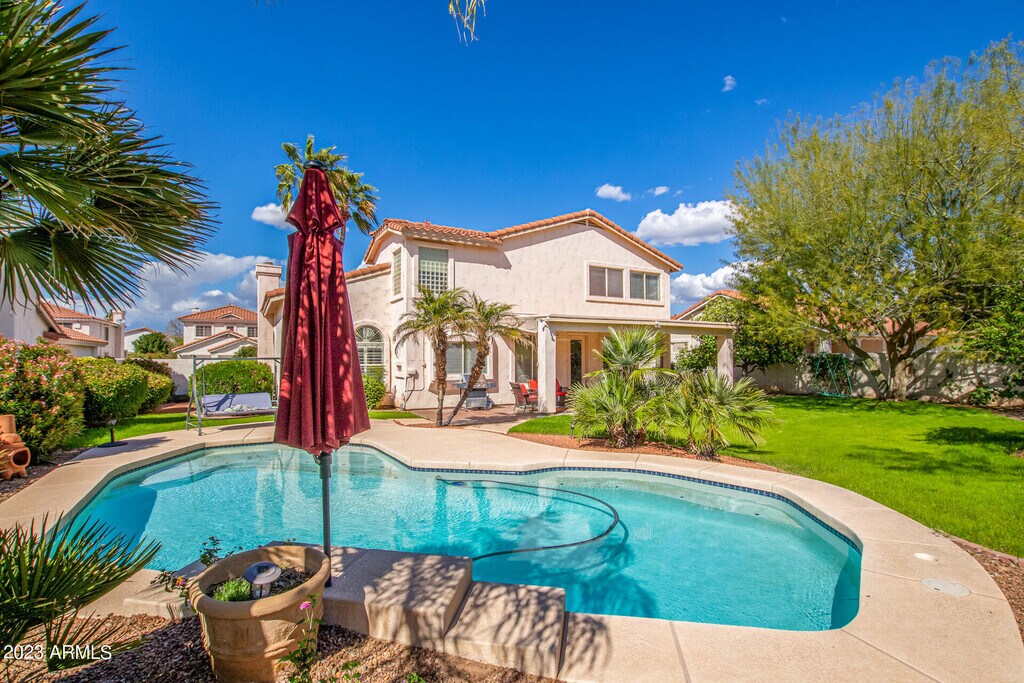 STUNNING HOME * IMPRESSIVE ENTRYWAY * SOARING CEILINGS * LARGE FORMAL DINING AREA * PLANTATION SHUTTERS * ENGINEERED HARDWOOD FLOORING AND TILE * CARPET UPSTAIRS ONLY * BRIGHT KITCHEN WITH CORIAN COUNTERTOPS AND ISLAND * FULL BATH AND BEDROOM DOWNSTAIRS * OVERSIZED MASTER SUITE * MASTER BATHROOM HAS DOUBLE SINKS AND SEPARATE BATH AND SHOWER * LARGE SECONDARY BEDROOMS * PRIVATE BACKYARD AND POOL * POOL HAS AN EASY TO INSTALL AND REMOVE CHILDGUARD FENCE * LUSH GREEN LAWNS AND SHADE TREES * GREAT LOCATION * WALKING DISTANCE TO SCHOOLS * NEAR TO ARROWHEAD MALL AND ALL THE SPORTING EVENTS AND ENTERTAINMENT OF THE P83 DISTRICT * HOME IS RENTED UNFURNISHED*