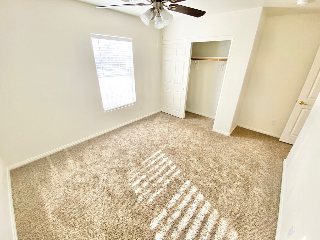 GORGEOUS 3 BEDROOM / 2 FULL BATH SINGLE FAMILY HOME , WITH 2 CAR GARAGE, DESERT FRONT LANDSCAPING EASY TO MAINTAIN, STEPS TO THE ENTRYWAY LEADING TO THE HOME,DINING ROOM AREA AND LIVING AREA SEPARATE AREAS W/ A PONY WALL , DINING AREA CEILING FAN LIGHT COMBO, KITCHEN AREA VERY OPEN SPACE W/ LOTS OF CABINET SPACE,ALL APPLIANCES INCLUDED AND WASHER & DRYER TOO! STAINLESS STEEL APPLIANCES IN THE KITCHEN, EXTRA CABINET STORAGE AREA, ALL BEDROOMS INCLUDED A CEILING FAN / LIGHT COMBO, ALL ROOMS ARE CARPETED, FULL BATH W/ SHOWER AND TUB COMBO, PRIMARY BEDROOM W/ CEILING FAN LIGHT COMBO , WALK -IN CLOSEST, PRIMARY BATHROOM DOUBLE SINKS , SEPARATE TOILET AREA, SEPARATE TUB AND SEPARATE SHOWER AREA, BACKYARD VERY OPEN SPACE , EASY TO MAINTAIN LANDSCAPING, NEARBY DINING, SHOPPING, SCHOOLS, AND RED ROCK CASINO , EASY FREE WAY ACCESS, THIS IS A MUST SEE!