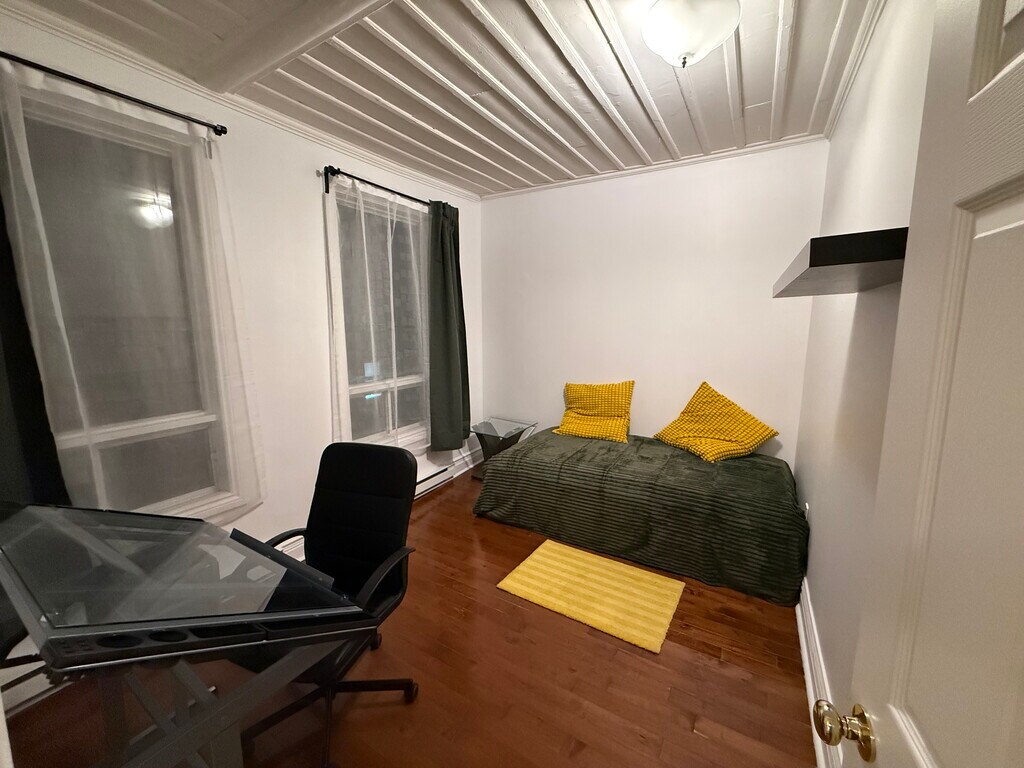 **Charming Fully Furnished 2-Bedroom in Saint-Sauveur – Private Terrace & Garden! Monthly Rental – Minimum 3 Months | Non-Smoking** Discover this rare gem in the heart of Saint-Sauveur: a beautifully renovated and fully furnished 4½ offering exceptional comfort, a private covered terrace, and access to a large shared garden (only one other unit). Perfect for professionals, newcomers, or remote workers looking for a peaceful, turnkey home. The Space 2 Bedrooms: • Bedroom 1: Double bed + large closet • Bedroom 2: Two single beds + work desk Modern, fully equipped kitchen: Stove, fridge, microwave, toaster, cookware, utensils—everything you need for comfortable daily living. Bright living room ideal for relaxing or working. Included in the rent: • High-speed internet • TV • Electricity (heating, lighting, hot water) • Washer & dryer Highlights: • Extremely quiet street • Easy on-street parking (city permit available) • Grocery store and SAQ a short walk away • Private covered terrace + large garden shared with only one unit Room Dimensions: • Bedroom 1: 146 x 134’’ (3.70 m x 3.40 m) • Bedroom 2: 134 x 106’’ (3.40 m x 2.70 m) • Living room: 131 x 171’’ (3.32 m x 4.34 m) • Kitchen / dining room: 162 x 142’’ (4.11 m x 3.60 m) • Terrace: 70 x 137’’ (1.77 m x 3.48 m)