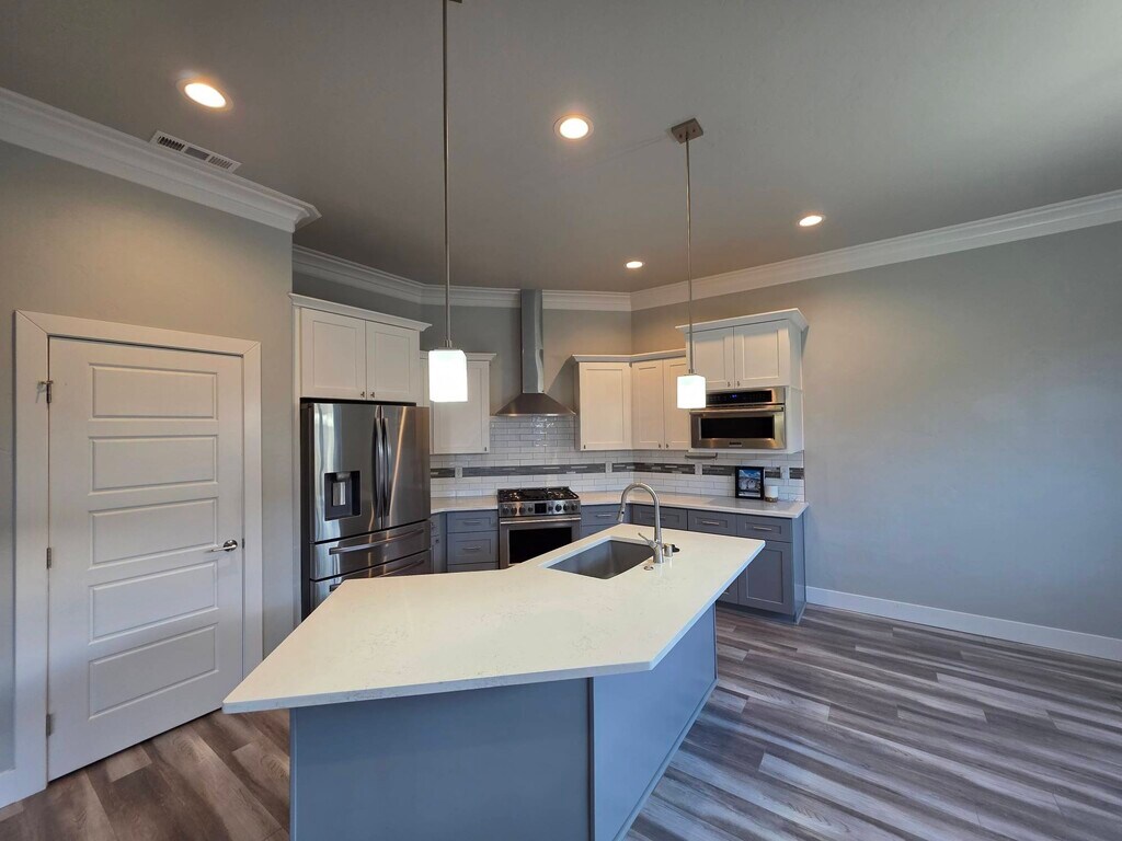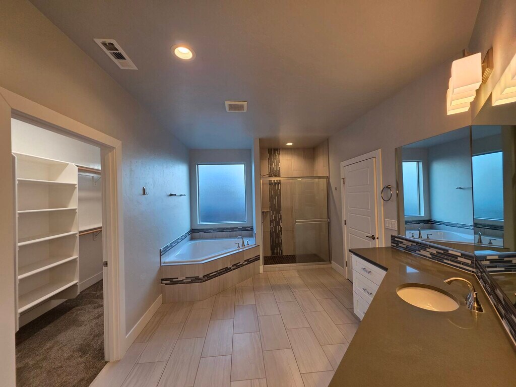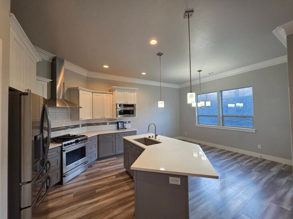 Luxury 4-Bedroom + Den Home in Belmont Heights – West Richland Built in 2019 by Infinity Homes, this home features 5 bedrooms, including two master suites, 3 bathrooms, 3 car garage, and 2428 sq feet of space to spread out. Designed with a split-bedroom floor plan, the home features two master suites—one on the main level and another located above the garage. The upstairs suite includes a walk-in closet, private three-quarter bath, and views of Red and Rattlesnake Mountains, while the main-level master suite provides a relaxing retreat with a spa-inspired en suite featuring a large soaking tub, tiled walk-in shower, double vanity, private commode room, and large walk-in closet. The main floor also includes two additional bedrooms and a double door den off the entry, perfect for an office or guest space. The kitchen comes with all appliances, including a 7-burner gas range, built in oven and microwave, and commercial-style vent hood. Elegant finishes such as a full tile backsplash, soft-close cabinetry, crown molding, and an oversized quartz island with bar seating make this space as functional as it is beautiful. The living room offers raised ceilings, large windows overlooking the back yard, a cozy fireplace surrounded by stacked stone, and an open flow to the kitchen and dining areas—ideal for entertaining. Step outside to a fully fenced backyard complete with in-ground sprinklers, a covered patio with a fan and lighting, and a gas grill hookup for year-round enjoyment. The large laundry room is a pass through from the 3 car garage and has full size washer and dryer hook ups (appliances not included), a large utility sink, and additional storage options. Located in the coveted Belmont Heights neighborhood, this home is just minutes from schools, parks, walking trails, dining, shopping, and the new Costco. Tenants are responsible for all utilities and yard maintenance. Pets may be approved upon owner approval with additional rent and/or fees. A one-time $150 administrative fee applies at lease signing. Available exclusively through KeyOne Property Management. Contact us today to schedule your private showing!