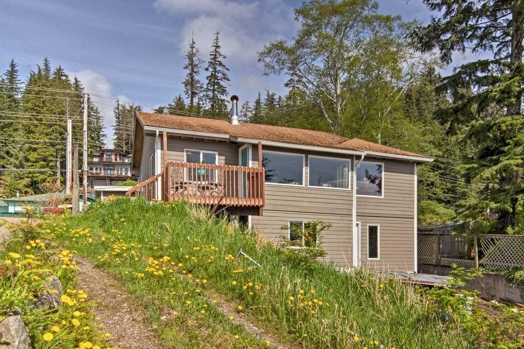 Waterfront, Fully Furnished Available October 01, 2027. 3 Bedroom, 1 Bath Waterfront Vacation Rental - Darling vintage cottage style home. Large open kitchen, washer/dryer. Completely outfitted; dishes, linens, towels. Everything included; utilities, internet, cable. Breathtaking views! Watch the eagles, whales and ships passing by. 5 miles south of town. $3,500.00 monthly with a minimum 6 month lease, shorter-term and rates may be available. Call or email us for rates and availability. Premier Rentals in Ketchikan, Alaska.