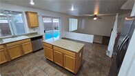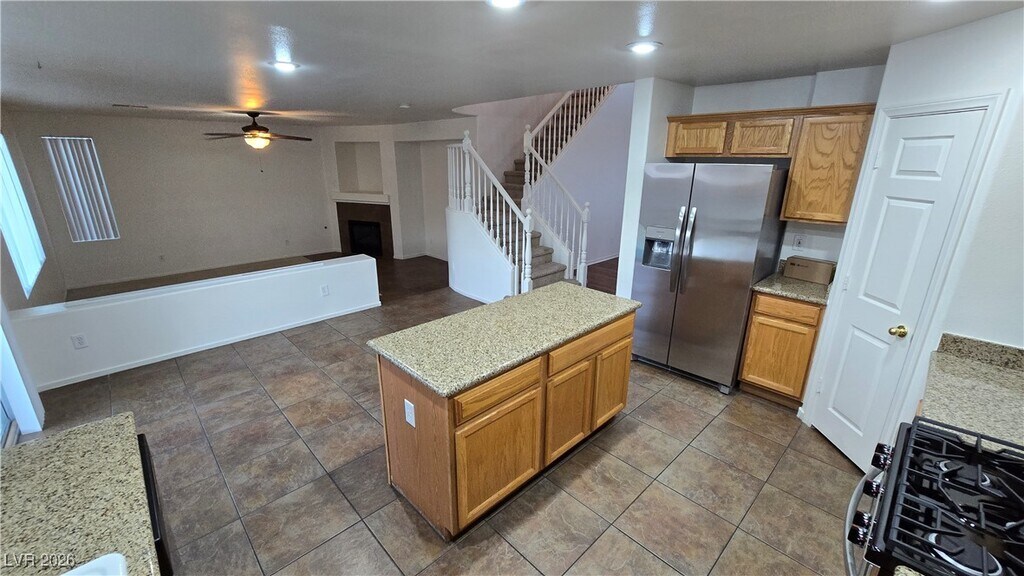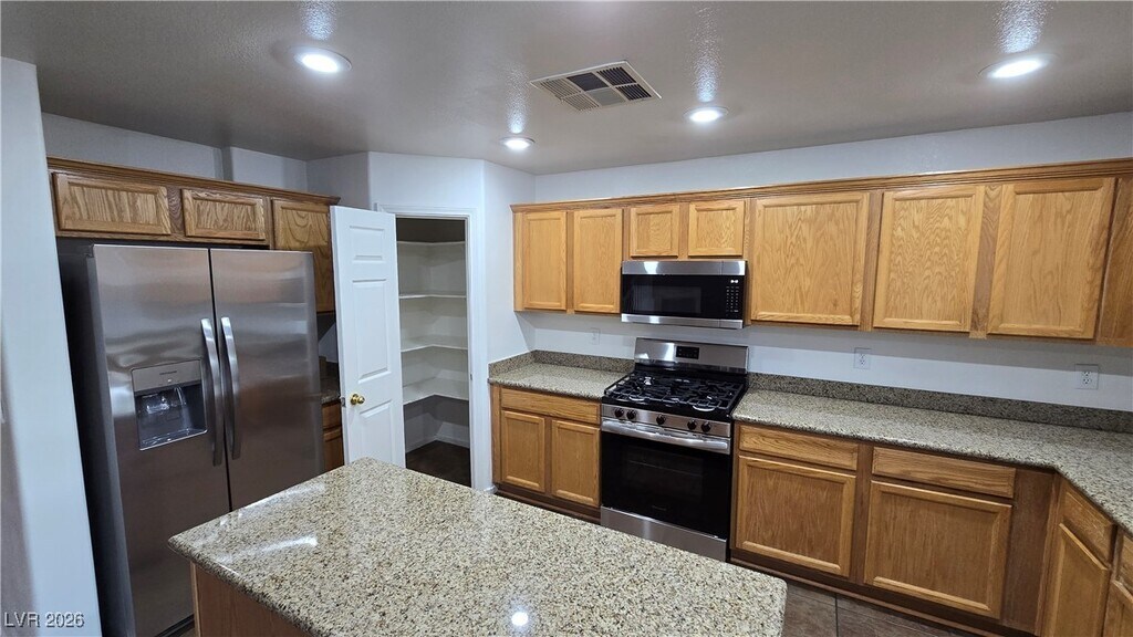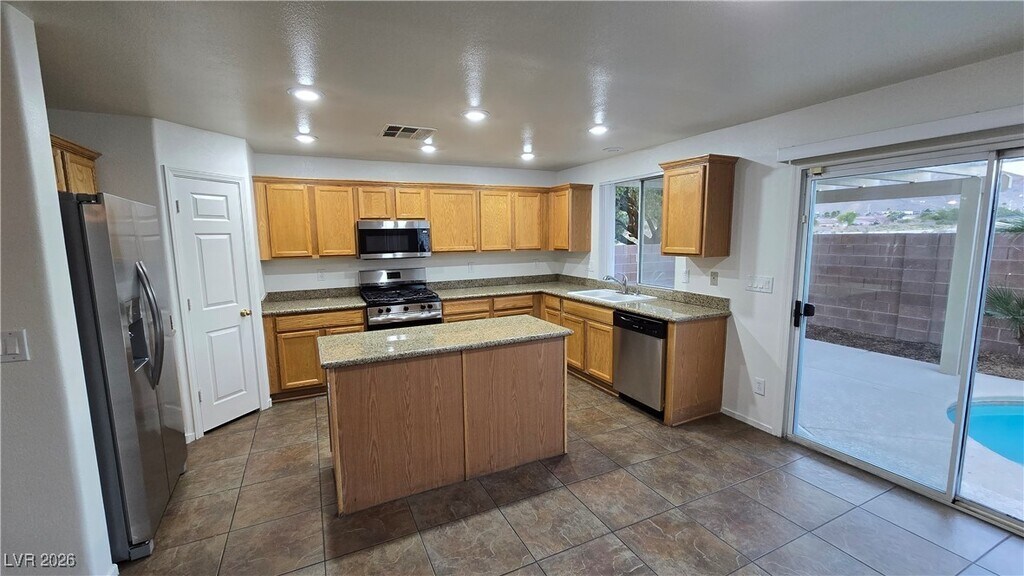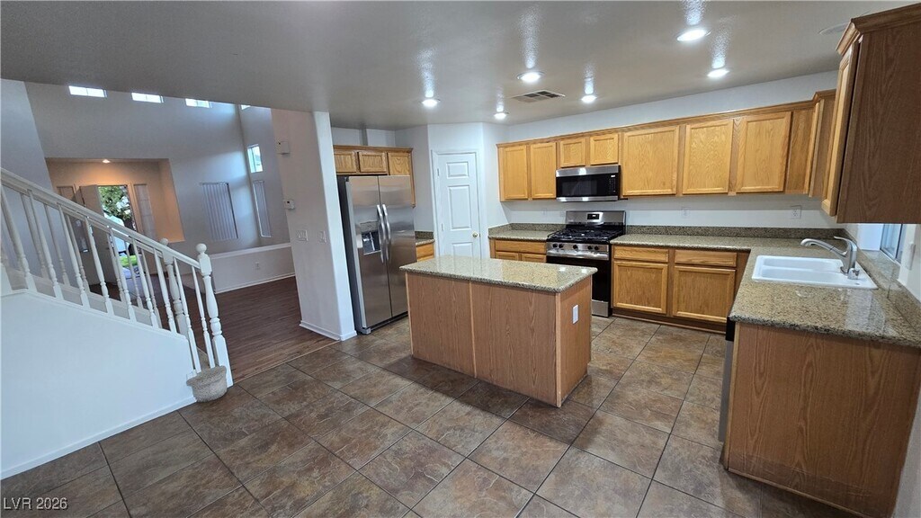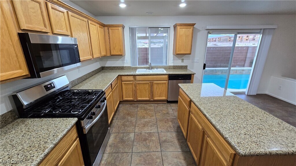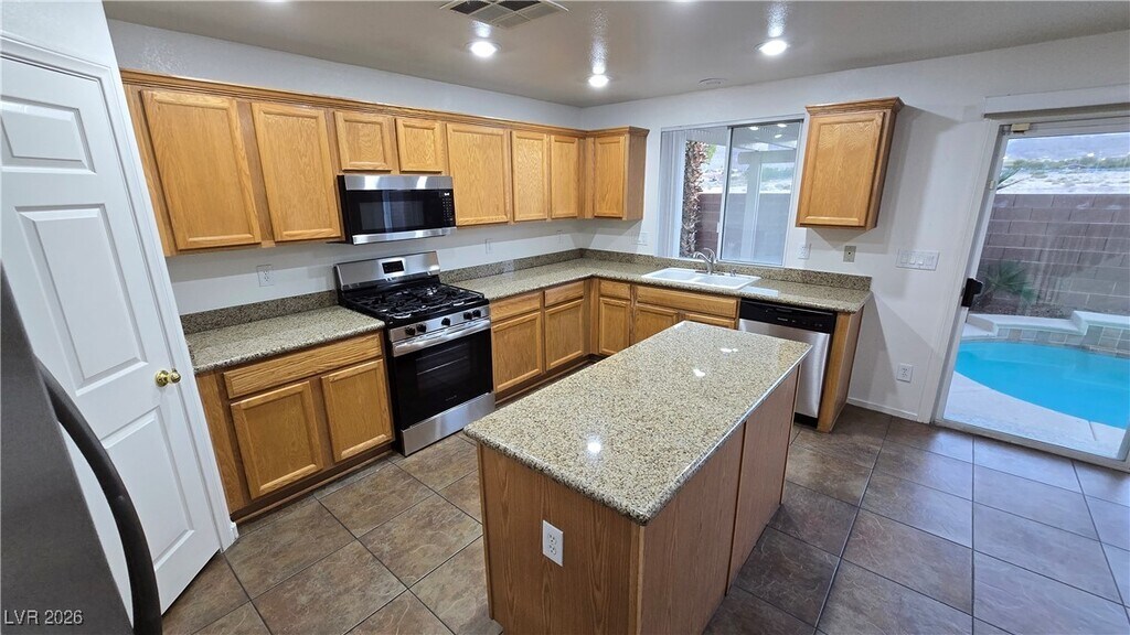 Summer Ready with a POOL! In the Summerlin South Area! 4 Bedrooms with a huge loft so ample space! All Brand New Stainless Steal Appliance!! Open Concept kitchen with granite counter tops. This home includes ceilings fans, one bedroom and full bathroom downstairs, a spacious family room and gas fireplace. Huge primary suite with two closets, shower and tub. The backyard has a covered patio with sparkling pool maintained by the owner! Also there is no neighbor behind! With gorgeous mountain views!
