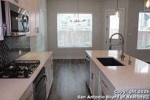 Don't miss this beautifully upgraded 3 Bedroom, 2.5 bath home in the Gated Community of The Enclave at Whitby ~ Bright and welcoming, it features large windows, a glass front door, and premium finishes throughout ~ quartz countertops, and stainless steel appliances ~ The chef's kitchen includes a spacious island, gas cooktop, and upgraded cabinets ~ Upstairs enjoy a private split-bedroom layout, convenient laundry room, and a luxurious primary suite with walk-in shower, garden tub, and double vanity ~ Minutes from IH-10, Medical Center, La Cantera, and top Shopping/Dining ~ Ideal for professionals or families seeking comfort and convenience.