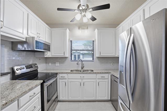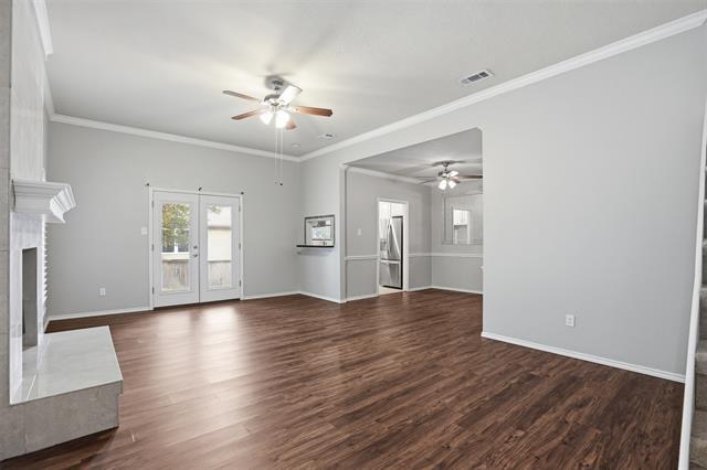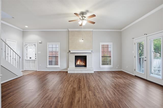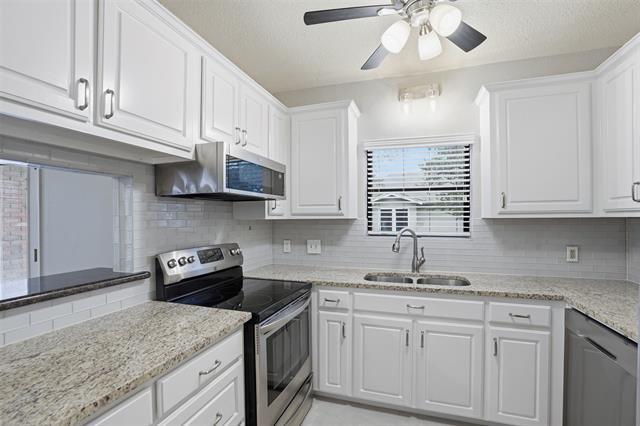 Welcome to your dream home! This stunning condo is move-in ready with amazing updates throughout. Step inside to discover a completely remodeled space, featuring a lovely kitchen with granite countertops, fresh white cabinets, and stainless steel appliances. The spacious family room has a charming brick fireplace and seamlessly flows into the dining room or back patio, perfect for entertaining. Upstairs, you'll find two bedrooms with walk in closets and 2 full bathrooms, including a primary suite with double doors opening to a balcony, offering a peaceful retreat. The upstairs hallway boasts three large closets, while downstairs has a closet, ensuring all your storage needs are met. The 2-car garage has an open storage area. This condo has been updated with plantation shutters, wood flooring, ceiling fans, and stylish light fixtures. Close to major highways and short stroll to Lake Arlington.