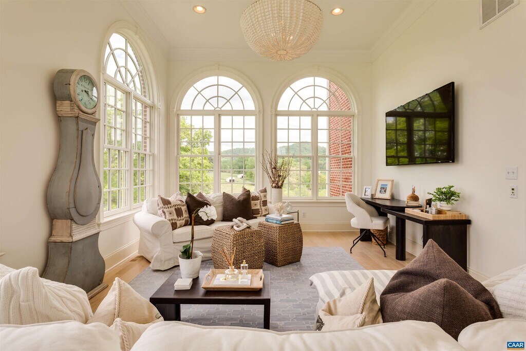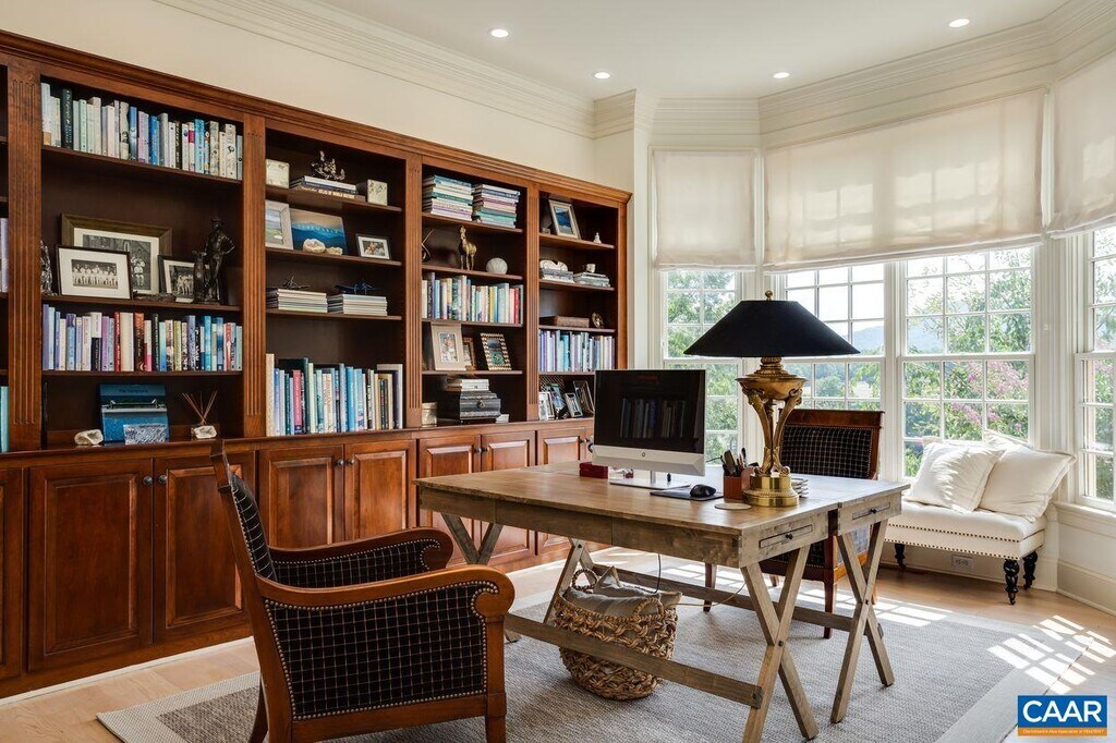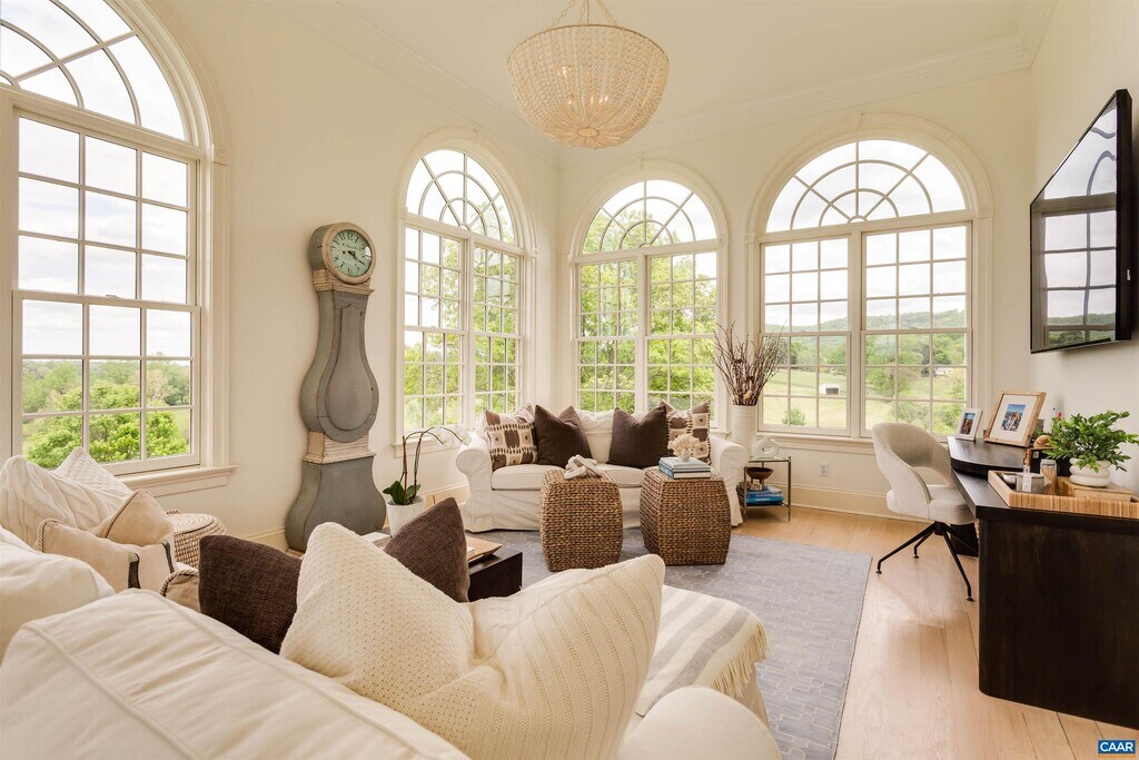Available for minimum of 6 months and maximum of one year. One of Ivy's most desired neighborhoods with great Blue Ridge Mountain views. Completely renovated with tasteful details & quality finishes, this elegant home includes formal & informal living spaces; living room, dining room, two family rooms, study & sunroom. All bedrooms with ensuite baths. Upgrades throughout - custom cabinetry, radiant-heated tile floor, crown molding, 5 fireplaces, Pella windows & doors, high end fixtures throughout, and more. Expertly sited to take advantage of 180 degree views. Less than 10 minutes to Charlottesville and UVA.