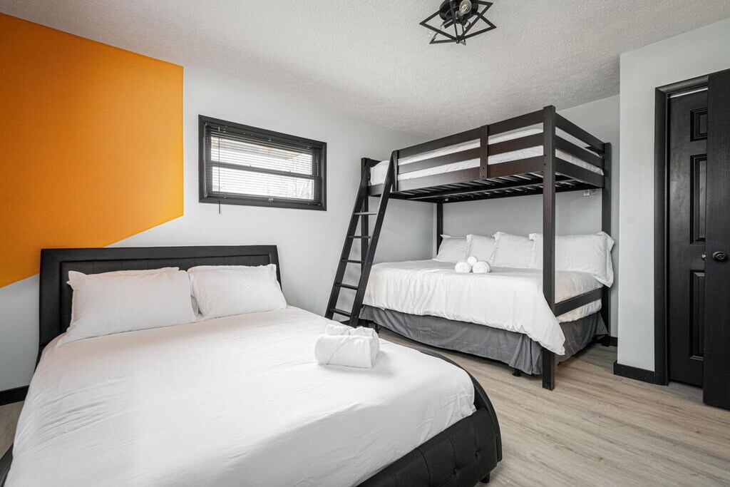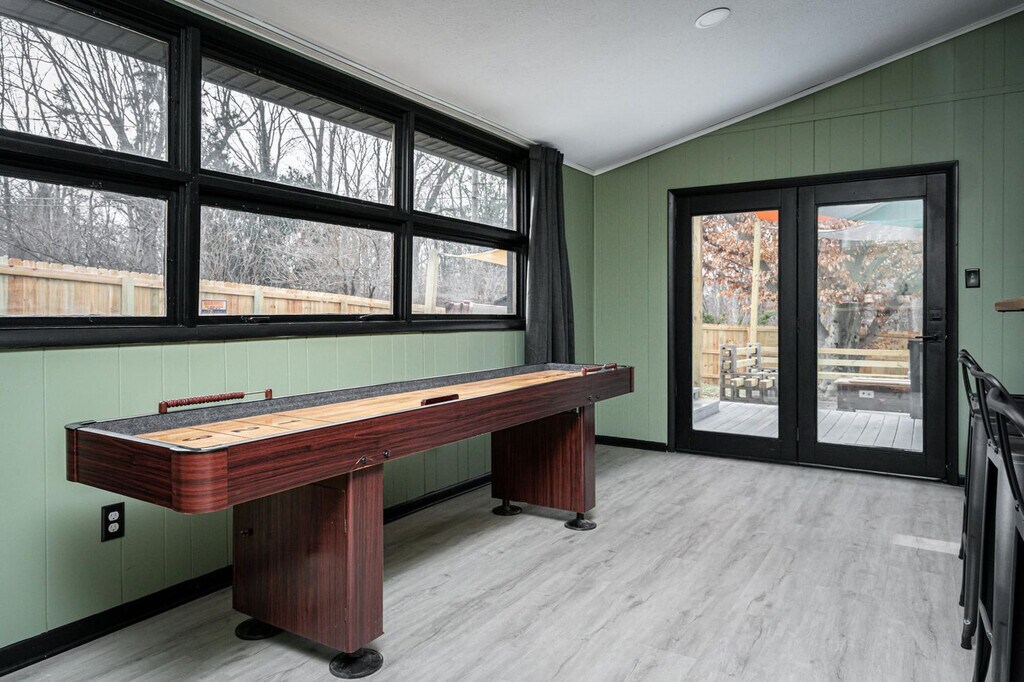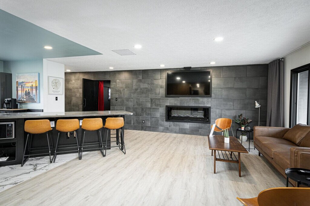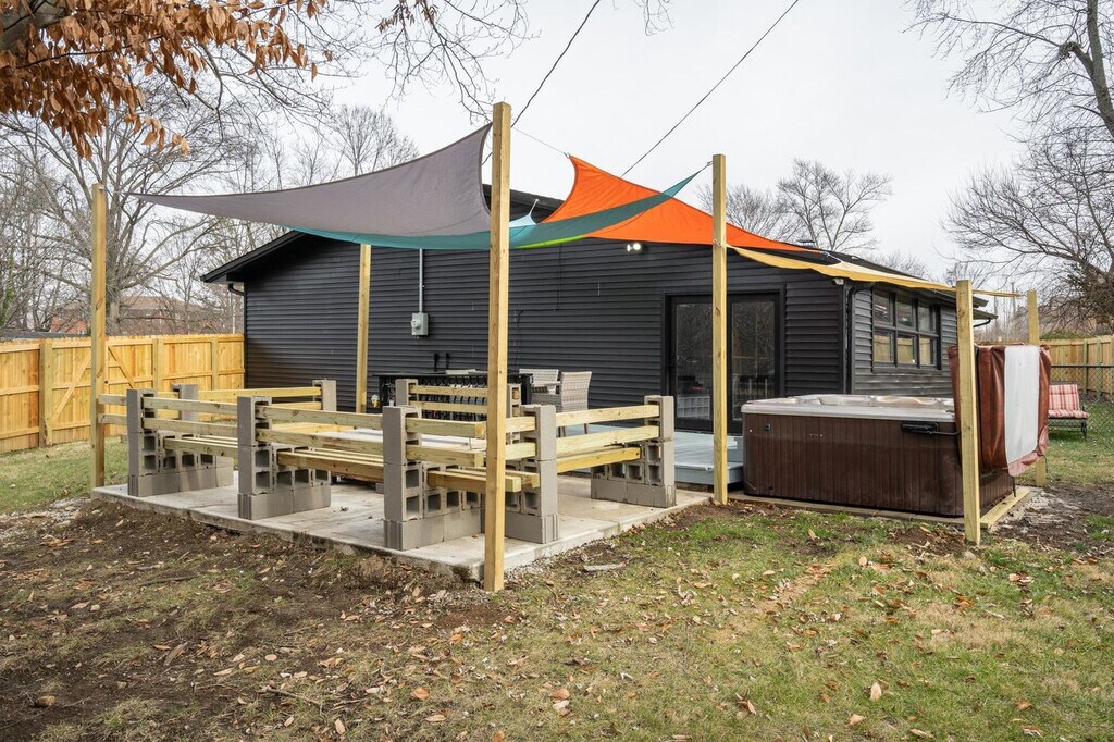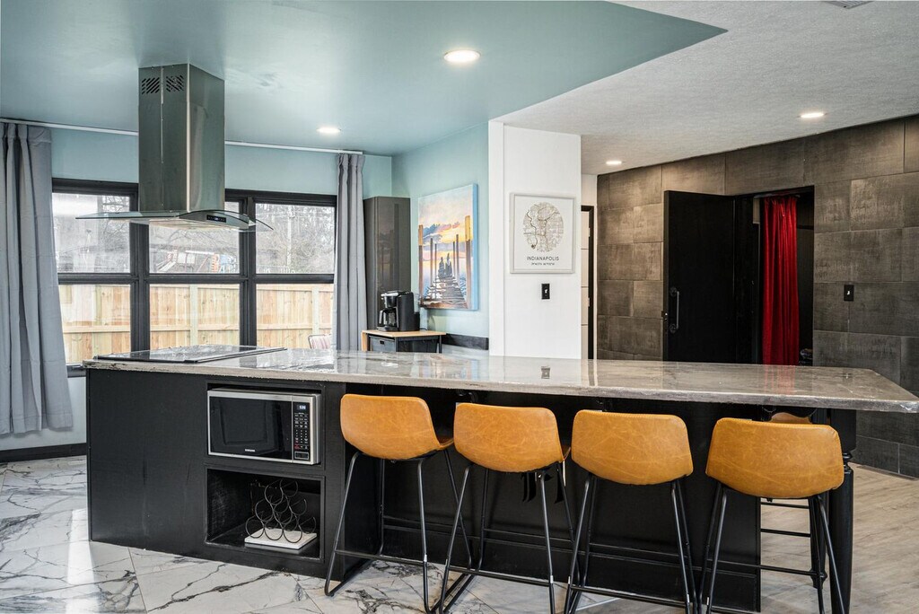 Feel at home in this unique, modern home nestled on the northeast side of Indianapolis, just south of Brendonwood. This luxurious home is the perfect base for exploring Indianapolis and enjoying this one-acre property. This living space has everything to make you feel at home, including a two-car garage, hot tub, movie theatre room, fire pit, TVs in every room, a gated dog park area, a large deck, and a game room. The fully equipped kitchen features stainless steel cooking appliances and a 12-foot kitchen island. Amenities also include high-speed Wi-Fi, self check-in (keypad), air conditioning, heating, a washer/dryer, and an iron/board. Parking is available in the driveway for 4 vehicles, and street parking is also available. Dogs are allowed after approval. Located just 3 minutes from the highway, you are 15 minutes from the heart of downtown Indianapolis. Nearby attractions include the Indiana State Fairgrounds & Event Center (4.3 miles), the Children's Museum of Indianapolis (6.2 miles), Massachusetts Avenue (8.3 miles), and the Indianapolis Zoo (11.0 miles). Parks such as Fort Harrison State Park (4.4 miles), Ellenberger Park (5.2 miles), Broad Ripple (5.5 miles), Garfield Park (11.0 miles), and Eagle Creek Park (15.6 miles) are also easily accessible. For sports enthusiasts, Lucas Oil Stadium (9.6 miles), Bankers Life Fieldhouse (9.7 miles), Victory Field (10.0 miles), and the Indianapolis Motor Speedway (10.2 miles) are nearby. Campuses such as Butler University (5.5 miles), Marian University Indianapolis (7.7 miles), IUPUI (8.7 miles), and the University of Indianapolis (18.2 miles) are also within reach. The Indianapolis International Airport is 23.1 miles away. Quiet hours are strictly from 10 PM to 7 AM daily. Noise sensors will alarm if you exceed an acceptable noise level, and after two warnings from property management, you will receive a $250 fine. If pets are found without approval, you will receive a $500 fine. There is no smoking or vaping of any materials in the rental, balcony, or any on-site facilities, and a $500 fine will be assessed for violations. Due to COVID-19 social distancing guidelines, there is a zero-tolerance policy for excessive noise and gatherings of more than 15 people, and failure to observe this rule may result in immediate removal with a $500 fine. [SI]
