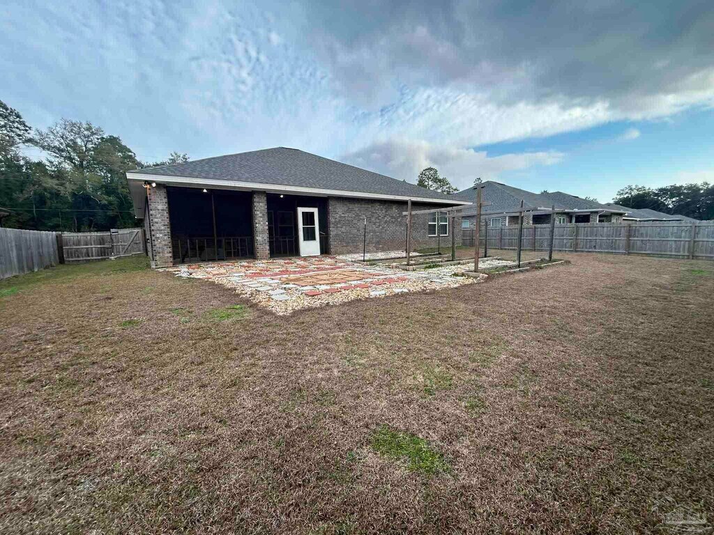 Step into modern comfort with this beautifully designed 4-bedroom,2-bath home located in a quiet Milton neighborhood. Built in 2022,this spacious 2,169 sq ft residence blends contemporary style with everyday functionality,offering an inviting layout perfect for families,professionals,or anyone seeking a peaceful place to call home. The open-concept living area features luxury vinyl plank flooring,abundant natural light,and a seamless flow into the upgraded kitchen. Enjoy cooking and entertaining with granite countertops,a large center island,stainless-steel appliances,and shaker-style cabinetry. The primary suite is a true retreat,complete with dual walk-in closets,a double-sink vanity,a relaxing garden tub,and an oversized tiled shower with dual shower heads. Three additional bedrooms provide flexibility for guests,office space,or hobbies. Step outside to a large extended patio overlooking a fully fenced backyard with a privacy fence and a charming garden trellis—ideal for outdoor dining,gardening,or unwinding at the end of the day. Additional highlights include a 2-car garage and a generous 0.33-acre backyard fenced lot. Located just minutes from shopping,dining,and local conveniences,with easy access to outdoor recreation at Blackwater River and a short drive to the beaches.