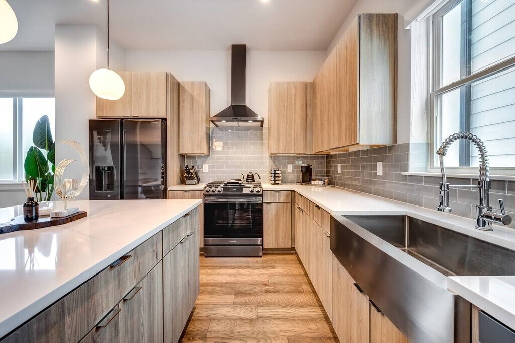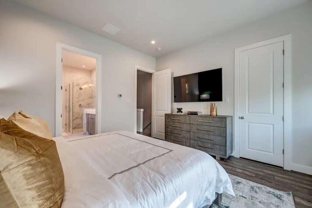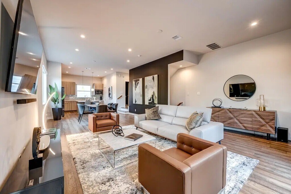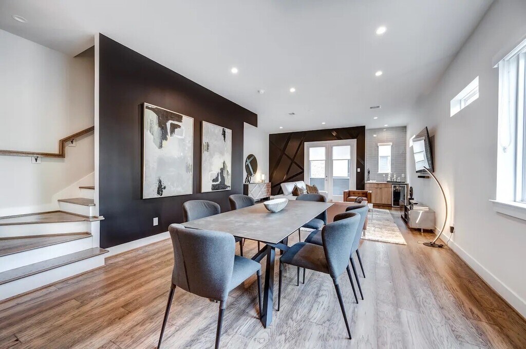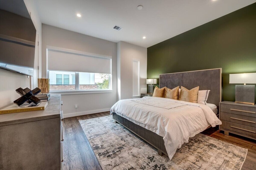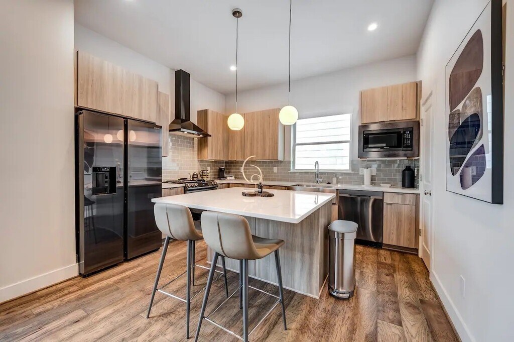 Sleek,stylish,and built to impress! This three-level stunner has a chic kitchen featuring trendy cabinetry,black stainless steel appliances,a spacious island,and under-cabinet lighting—all flowing into an open living area with engineered wood floors. The second level offers a bright living/dining space with a covered balcony and beverage chiller,perfect for entertaining. Retreat to the luxe primary suite with soaring ceilings,a spa-like bath featuring a walk-in shower,freestanding soaking tub,dual sinks,and two expansive closets. Schedule your tour today! MLS# 15434536