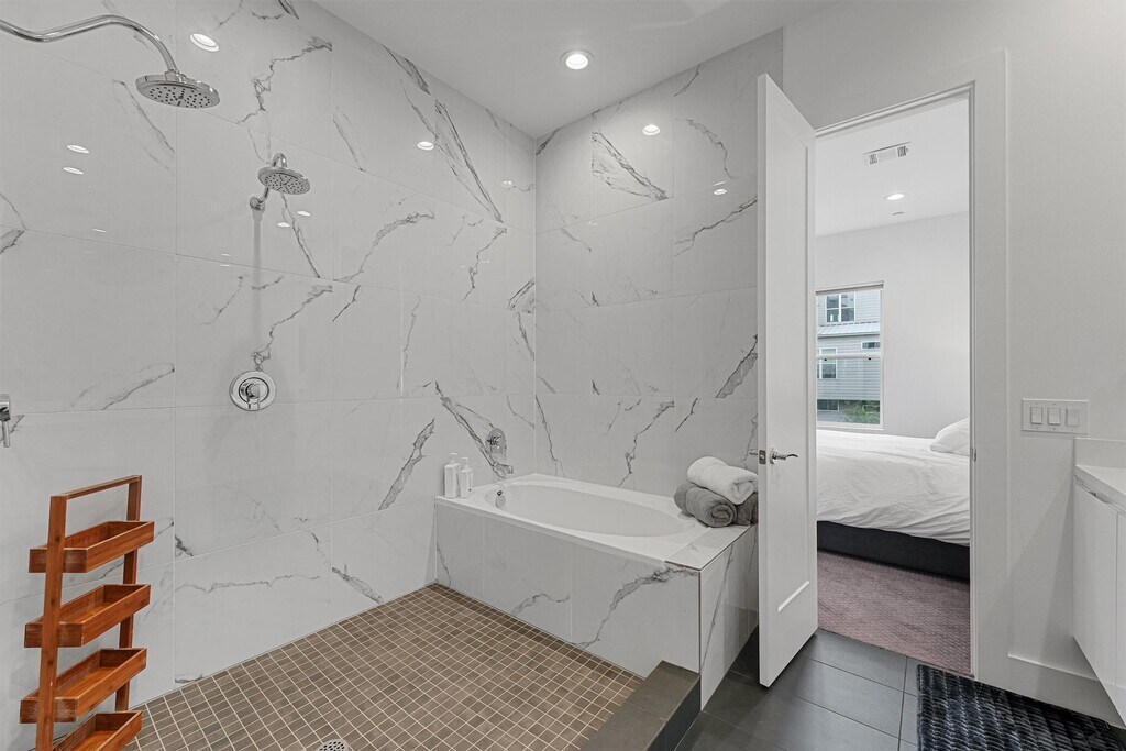 Luxury living in one of the largest floor plans in this gated 90-home community near The Galleria. This refined townhome features high-end finishes,an en-suite bedroom,and a mudroom. The second floor boasts an open-concept design with soaring ceilings,oversized windows offering premier community views,remote-controlled shades,and a chef’s kitchen equipped with quartz counters,Bosch appliances,Italian hood vent,wine fridge,and a balcony. The third level offers a spacious primary suite with blackout shades,a spa-like bath with soaking tub,dual vanities,walk-in closet,and nearby laundry. The fourth floor features a game room,another en-suite bedroom,and access to a rooftop terrace. Additional perks include hardwood flooring throughout and a prime location near top shopping,dining,and commuter routes. MLS# 87753185