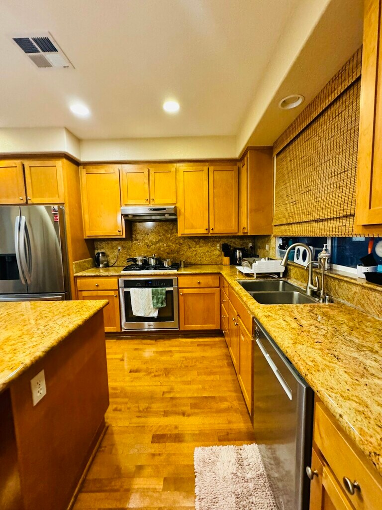 Welcome to 5855 Hillbrook Pl, a stunning detached former model home offering 3 bedrooms, 3.5 bathrooms, and over 1,700 square feet of thoughtfully designed living space. The first floor features a private bedroom with a full bathroom—ideal for guests or multi-gen living—along with a spacious patio and an attached two-car garage with storage and epoxy flooring. On the second floor, enjoy soaring ceilings in the living room, a separate dining area, a convenient half bath, a dedicated laundry room with washer and dryer, and an open chef’s kitchen appointed with stainless steel appliances. The third floor hosts the primary suite with a double vanity, walk-in closet, and walk-in shower, plus a well-sized third bedroom and a full hallway bathroom. Located near top-rated schools and everyday conveniences, this home is close to shopping, BART, Whole Foods, Emerald Park, Fallon Sports Park, and the San Francisco Premium Outlets. Tenant is responsible for all utilities. Rental requirements: minimum 680 credit score and gross monthly income of at least 3x the rent. For questions, applications, or to schedule a showing, please contact Steve.