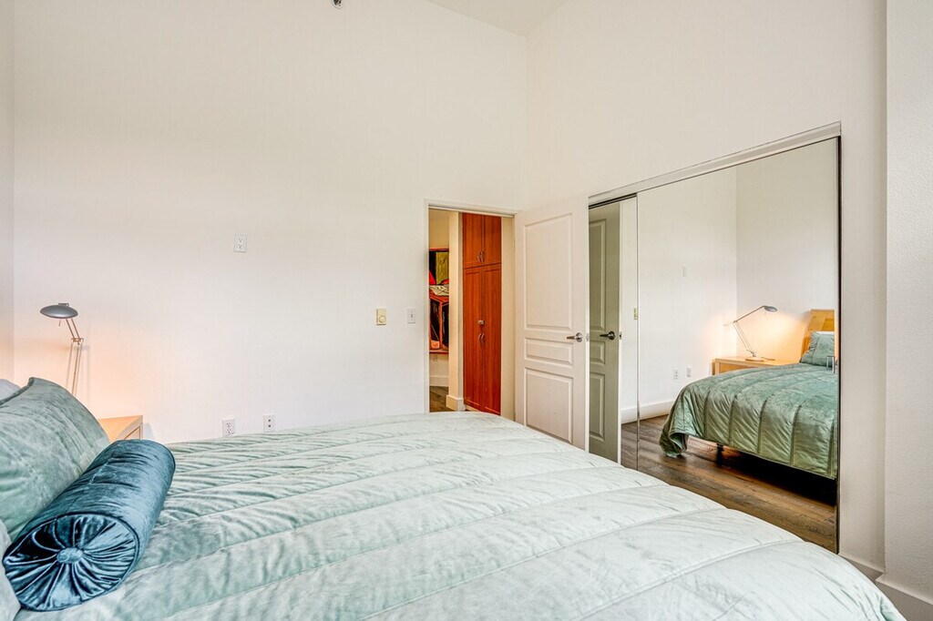 Located in The Terraces at Emerystation, this 2-bedroom, 2-bath condo offers a prime location just 10 miles from downtown San Francisco. Situated on the 4th floor, this single-story condo provides step-free entry via a community elevator, making it easily accessible. Feel at home in this vacation rental, perfectly positioned near San Francisco and Berkeley, offering endless adventures. Enjoy the comfort of a spacious living area featuring a 65" Smart TV, a dining table, and a breakfast bar. The private balcony with seating provides a perfect spot to relax. The fully equipped kitchen includes a refrigerator, microwave, stove/oven, dishwasher, drip coffee maker with milk steamer, toaster, and all the cooking basics and dishware you need. Parking is available in the community garage for one vehicle. Additional fees and taxes may apply. Explore the best of The Golden State with this condo's ideal location near San Francisco and Berkeley. Whether you're catching a ball game at Oracle Park or savoring delicious seafood at Fisherman's Wharf, a memorable trip awaits. The neighborhood offers convenient access to public transportation and nearby attractions. This property features one exterior security camera located at the front door facing the entryway, recording video and audio when motion is detected. Quiet hours are observed from 9:00 PM to 7:00 AM. No smoking, pets, events, parties, or large gatherings are allowed. Guests must be at least 25 years old to book. Keyless entry provides easy access to the entire property. Includes free WiFi and two portable air conditioners to ensure a comfortable work-from-home experience. [SI]