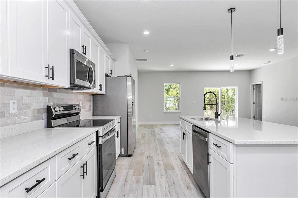 One or more photo(s) has been virtually staged. Beautifully Built Newly Built House for Rent in Ocala Be enchanted by this charming newly built residence in Ocala,which welcomes you with a cozy veranda and surrounding garden. With a modern design and open-concept floor plan,the house offers 4 spacious and well-lit bedrooms and 2 full bathrooms,all with excellent quality finishes. The living room is spacious and integrated,connecting to the backyard patio through sliding doors,ensuring abundant natural light and a pleasant feeling of spaciousness. High-quality vinyl flooring and refined finishes reinforce the contemporary style and comfort of the property. All bedrooms have closets,providing practicality and organization. The bathrooms combine functionality and elegance,with modern sinks and custom-designed cabinets. The kitchen is practical and elegant,equipped with cabinets and essential appliances,ideal for everyday use. The laundry room has adequate space for installing your equipment. The house has a garage for two vehicles with an automatic gate,offering security and convenience. Located in a strategic area of ??Ocala,close to leisure options,shops and services. Schedule your visit and come see the ideal property to live in comfort,style and quality. MLS# O6367897
