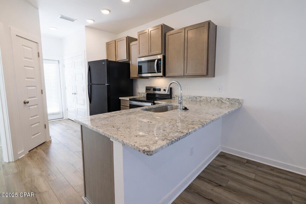 Be the very first to call this brand-new 3 bedroom, 3 bath townhome your own. This immaculate home has never been lived in and offers a thoughtfully designed floor plan with modern finishes throughout. A downstairs bedroom with full bath provides the perfect option for guests or multigenerational living, and is especially convenient for anyone who prefers to avoid stairs. It could also serve as a quiet home office, giving you flexibility to suit your lifestyle.The kitchen features all new appliances and an open layout that makes both cooking and entertaining easy.Enjoy the peace of mind of zero delayed maintenance that comes with new construction, along with the convenience of being located just 6 miles from Tyndall Air Force Base. A dog park within the community adds an extra layer of lifestyle appeal for pet owners, and yes--pets are welcome here.With its fresh construction, modern amenities, and prime location, this home is move-in ready and waiting for you.*The home pictured is the same floor plan, but a reverse swing/mirror image of available home.