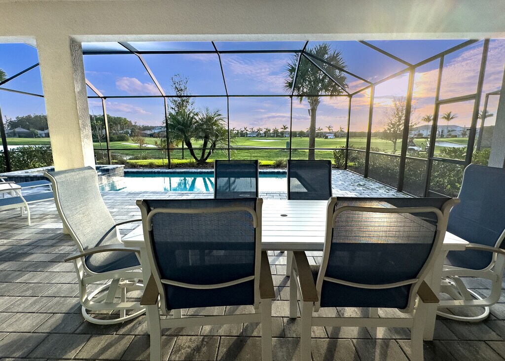 April 2025 is still available in this spectacular golf course/pool home in Southwest Florida. You'll enjoy tremendous sunsets from the beautiful pool, in this gated resort community, with golf course and water views. Rental comes with golf privileges for a $100 transfer fee. This home is available for your family vacation or a couple's get-away. Open floor plan, large island for easy entertaining, with Tommy Bahama-style decor throughout. All-tile floors make it easy for indoor-outdoor living, around the private pool and heated spa. Enjoy sunset dinners from the screened lanai, poolside. 3 bedrooms, 2 baths, plus a convenient pool half-bath. This home is just steps from the resort amenities with community resort pool, outdoor bar and grille, fitness center and spa, pickleball, tennis, bocce court, driving range, putting green, and golf pro shop. Watch the golfers finish their round on the 18th hole in your backyard. Tenants pay a $150 application fee. Golf membership transfer is $100, then you only pay a $30 cart fee per round and NO GREENS Fees. (Unheard-of prices for the Naples area) $150 membership transfer gives tenants access to all amenities. The lovely "European-inspired" Piazza at Ave Maria Town Center has shopping and restaurants. Ave Maria has its own Water Park, and miles of bike and walking paths. Community events held in the Piazza include music and food festivals, antique car shows, crafts and more. Ave Maria is the 16th fastest-growing community in the entire United States. "Once you get here, you get it"... and you'll never want to leave! (11% hotel tax already included in the monthly rental price.) ($3495-October, $4395-November, $10,995 Dec. Jan and April) Sorry already booked for Feb and March, 2025.