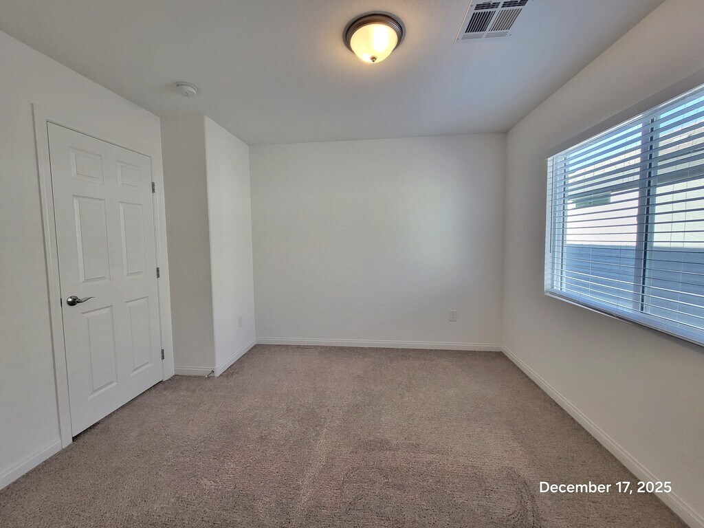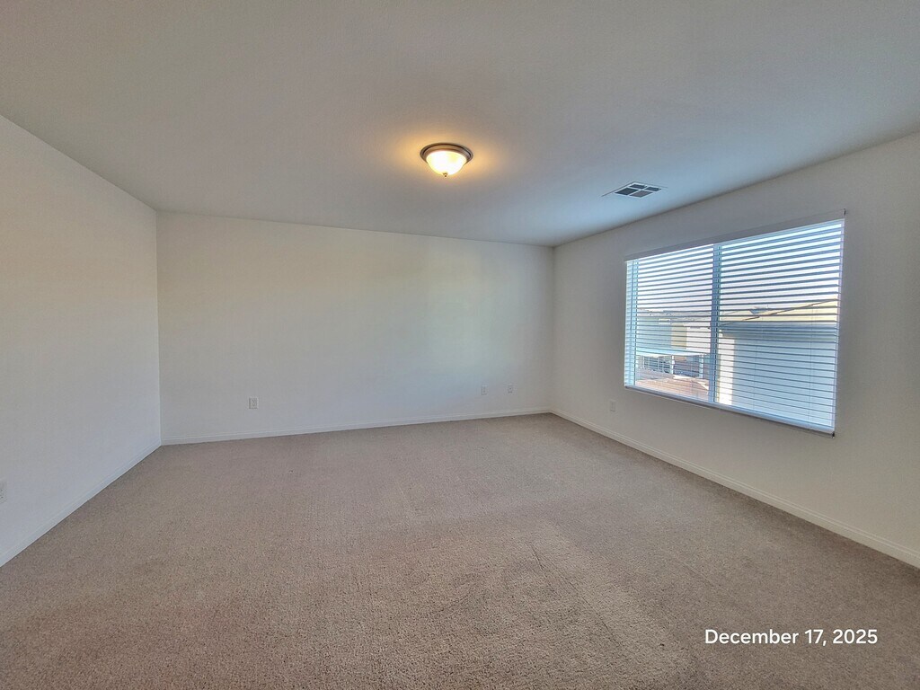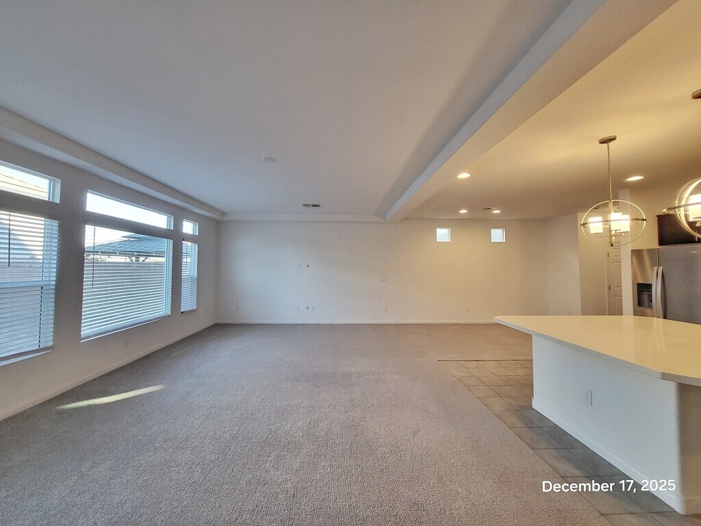Spacious two-story home with an open-concept floor plan and abundant natural light. Modern kitchen features quartz countertops, stainless steel appliances, dark cabinetry, and a large center island. Upstairs offers a versatile loft, generously sized bedrooms, and a primary suite with dual sinks, walk-in shower, and walk-in closet. Move-in ready with a 2-car garage and low-maintenance desert landscaping.