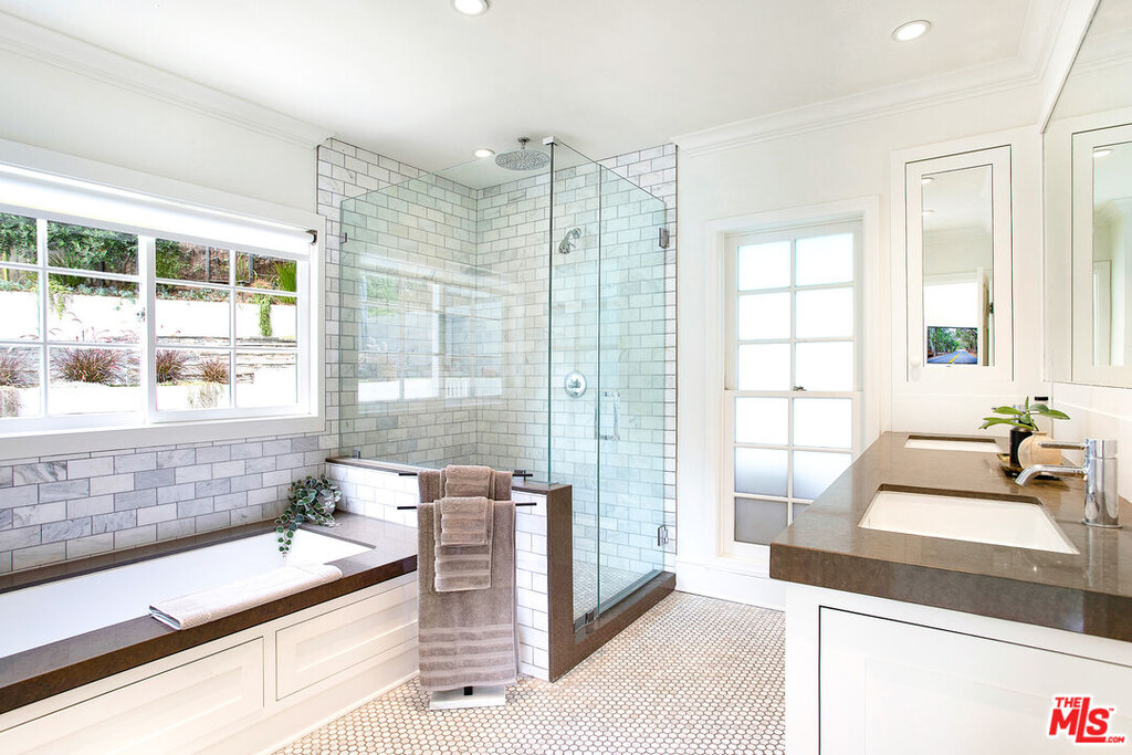 *Furnished Home Avail mid March - 3 month minimum* Minimalist Hollywood Hills Home with Tranquil Pool. Tucked away in lower Bronson Canyon Oaks, this sun-soaked hideaway features a backyard oasis framed by sweeping hillside and canyon views. A large free form pool and spa invites lounging, while hillside outdoor living flows indoors to an expertly designed and tranquil retreat, featuring three bedrooms plus a guest suite/office. Nestled among beautiful and walkable streets, yet minutes away from the heart of Hollywood, Franklin Village and Los Feliz. An expansive great room, outdoor flow from every room is the epitome of LA living. The living room's painted floors, classic crown molding juxtaposed with Scandi custom built-ins and mid-century furnishings is inviting and modern. The voluminous central space blends living, dining & kitchen in one bright, airy expense with ample windows and French doors to invite light and air. A sleek chef's kitchen sets the stage for relaxed cooking and intimate dinners, with a center island, Sub Zero fridge, two sinks and Viking range. Three well appointed bedrooms lie on the main level, including a spacious primary suite with King bed, walk in closet, spa-like ensuite bath with separate tub and shower and French doors that open to the outdoor patios, pool and spa. Downstairs, the oversized, home office/guest studio has direct access outdoors, and features a queen sofa bed. The private backyard feature a sparkling pool, spa, firepit, built-in seating, grassy yard and large patio nestled into the hillside's natural typography and encircled by your own private bluff, old growth trees and canyon views. Electric Car charger in garage. Stay longer, and make this your second home! ***NOTE*** Advertised Rate is for 7 month + lease only , no utilities included, for 3-6 month stay = $18,500 (basic utilities, no pool heating incl). Minimum 3 month, subject to availability. Security Deposit : 1 month rent + for all leases, subject to application. Must be rented Furnished ONLY. 4th bedroom is attached guesthouse set up with home office and sofa bed. Tenant Pays one time $1000 fee for Host Fee in lieu of Airbnb Fees. Pool Heating is not included. Can be included for $1700 per month additional. Enquire for Details. MLS# 26655157