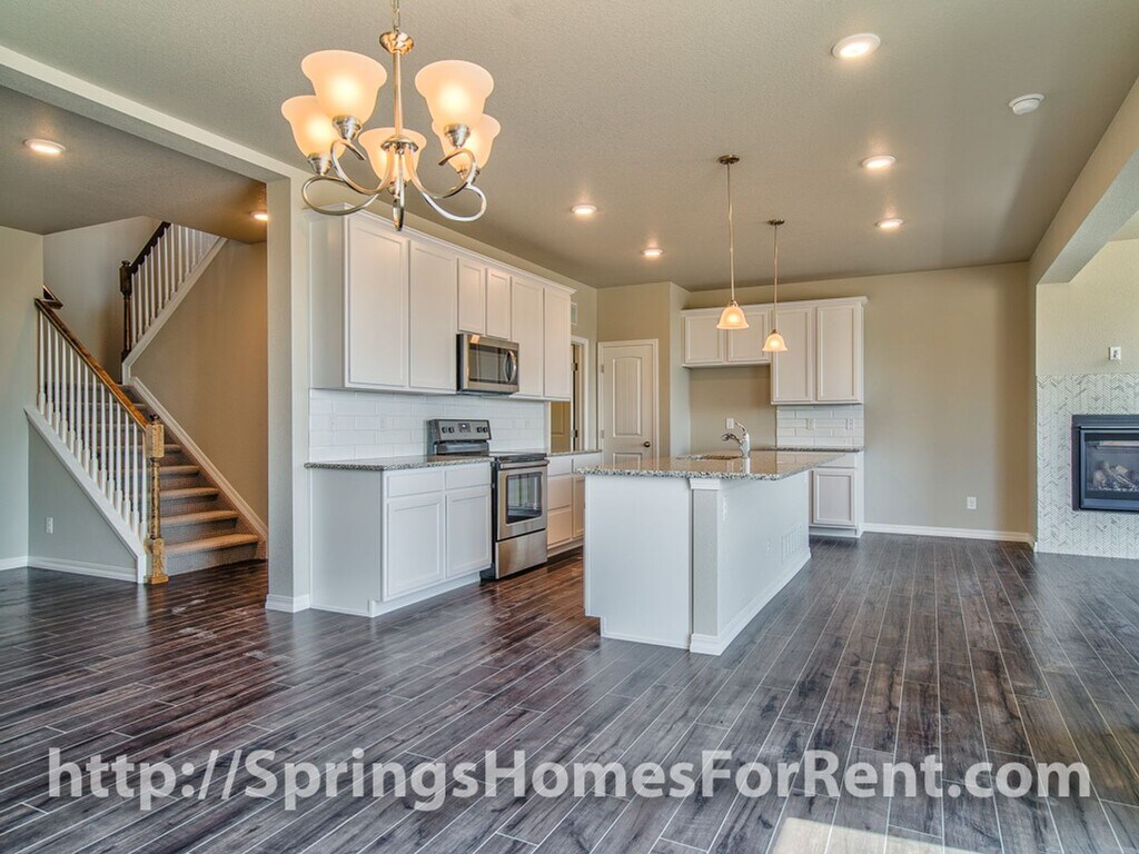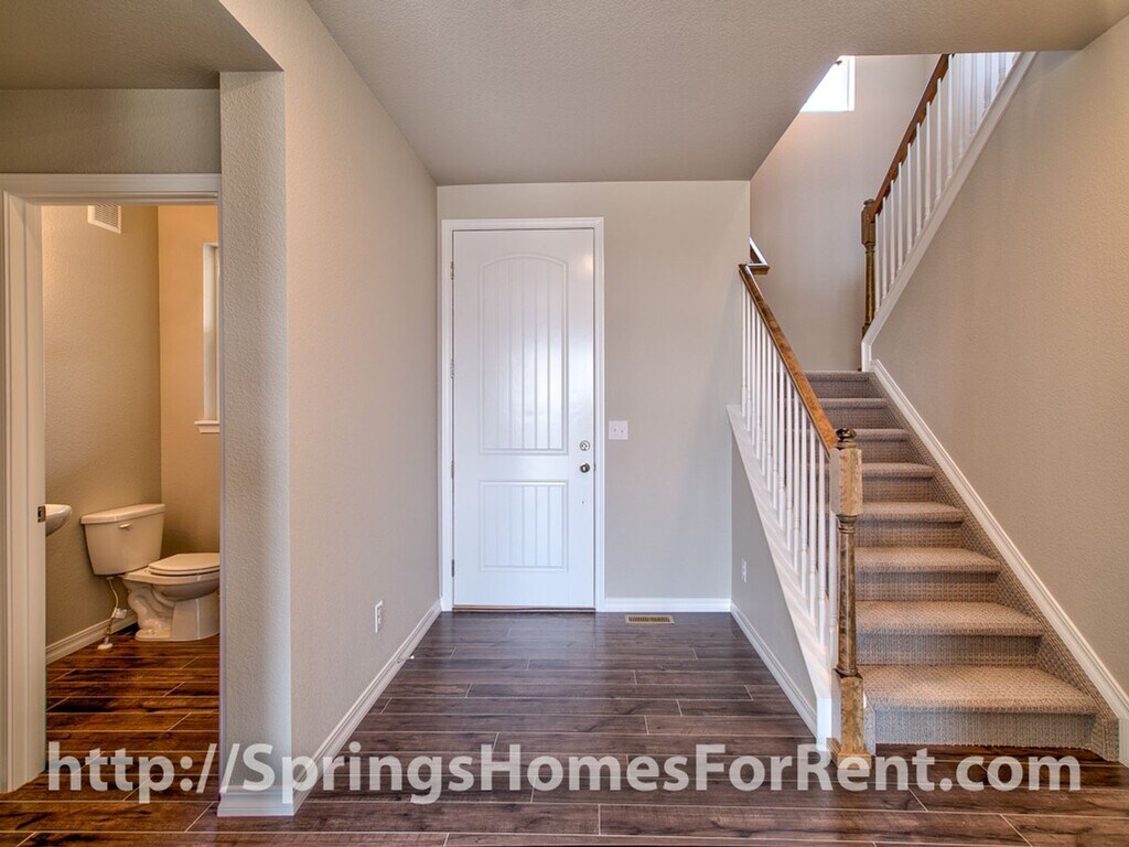 A stunning property located on the west side of Colorado Springs. This home boasts loads of natural light with the plethora of windows throughout. Hardwood flooring basks the main level living/dining space and patio doors take you out to a large deck to watch the fabulous sunsets. The kitchen is a chef's dream, complete with stainless steel appliances, loads of counter and cabinet space and an eat at kitchen island making meal prep and clean-up a breeze. The living area features a cozy fireplace, perfect for those chilly Colorado evenings. The upper level of this home has a full bath, two bedrooms and a primary bedroom with ensuite and walk in closet. The unfinished walkout basement is great for extra storage or work out equipment. Experience the perfect blend of functionality and style in the Rockrimmon Townhouse.