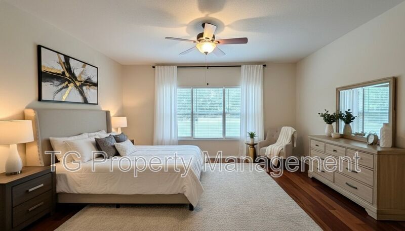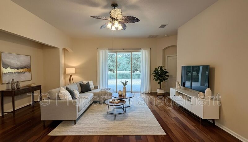 Inside, you’ll find a thoughtfully designed floor plan featuring tile, hardwood, and carpet throughout. The spacious living room is filled with natural light and opens through sliding glass doors to a peaceful backyard patio overlooking a serene pond—perfect for relaxing mornings or evening gatherings. The large kitchen is a chef’s delight, complete with stainless steel appliances, ample counter space, and a separate formal dining room, ideal for entertaining. Designed for both comfort and style, this residence offers an exceptional blend of luxury living and everyday convenience. The primary suite serves as a private retreat, boasting a spa-inspired master bathroom with a stand-up shower and a garden-style soaking tub with jets. Additional highlights include a designated laundry room and a generous 3-car garage, offering plenty of storage and parking space. Step outside to enjoy the covered lanai and outdoor patio, ideal for year-round Florida living. Beyond the home, the community offers resort-style amenities including a sparkling pool, tennis and volleyball courts, and a beautifully maintained park for outdoor recreation. Application & Move-In Process: Our rental application process is simple and efficient! Once your application is submitted, it will be reviewed and a decision is typically provided within 1–3 business days. If approved, a security deposit is required within 48 hours to secure the home. Please note that we cannot hold properties without a paid deposit. After the deposit is received, we require a minimum of 7 days before move-in to allow for final preparations and scheduling. We look forward to helping you make this your new home! Amenities: community pool, community park, tennis court(s), volleyball court, outdoor patio, luxurious master bathroom, covered lanai, 3 car garage