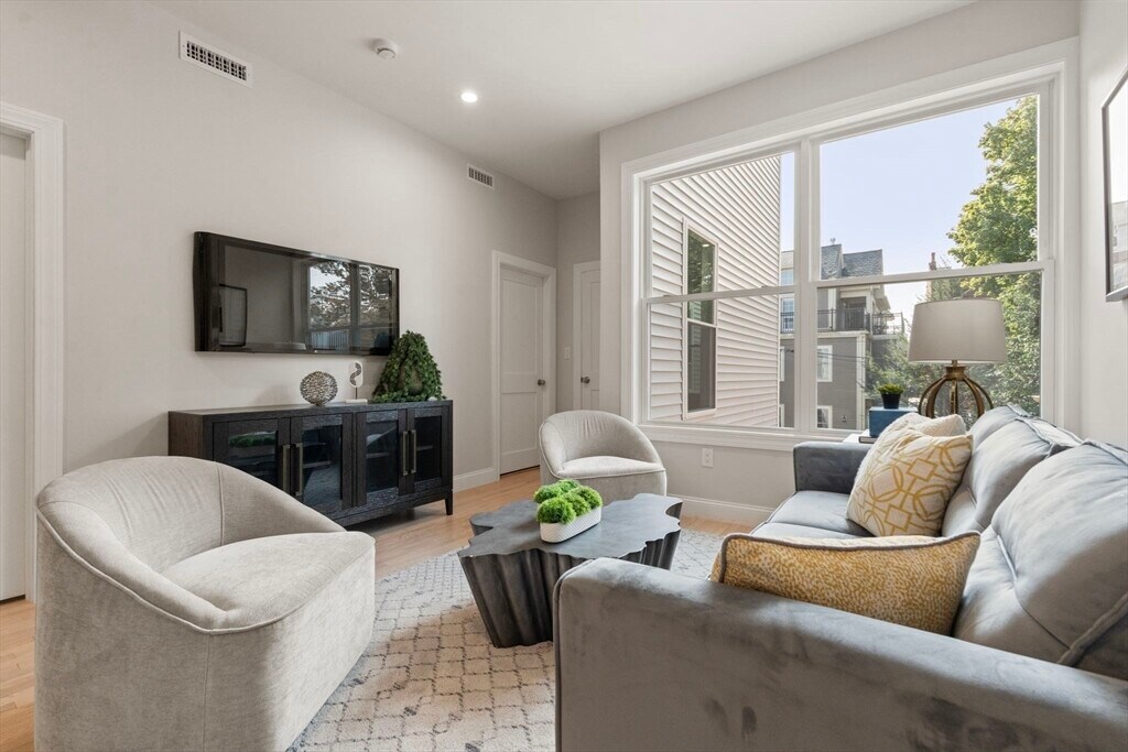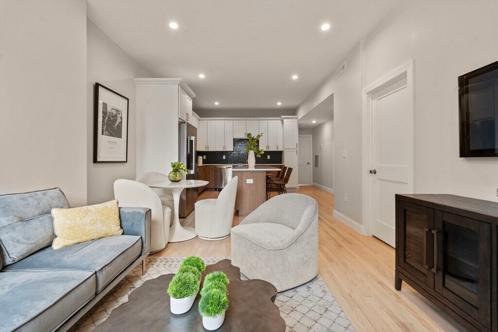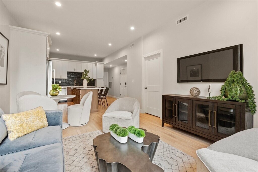 Welcome to 587 East Broadway,Unit 3: a brand-new 4-bedroom,2-bath condo. Up just one flight of stairs from the front door,this 1362 sqft condo offers open-concept living & dining with natural light,high ceilings & sleek finishes. Kitchen features ample premium cabinetry,slow close drawers,quartz countertops,and modern high-efficiency appliances. Oven even has an airfryer function! Central air/heat and each spacious bedroom has its own closet. Bathrooms and in-unit laundry access is shared from living area to ensure ease of use. Enjoy the outdoors in the newly built rooftop deck with sweeping views of the heart of South Boston. Building has gone through a complete renovation. Located down the street from the waterfront/beaches,public transportation,the library,shops,and dining. Be the first to live in this completely renovated unit and enjoy everything South Boston has to offer! MLS# 73461085