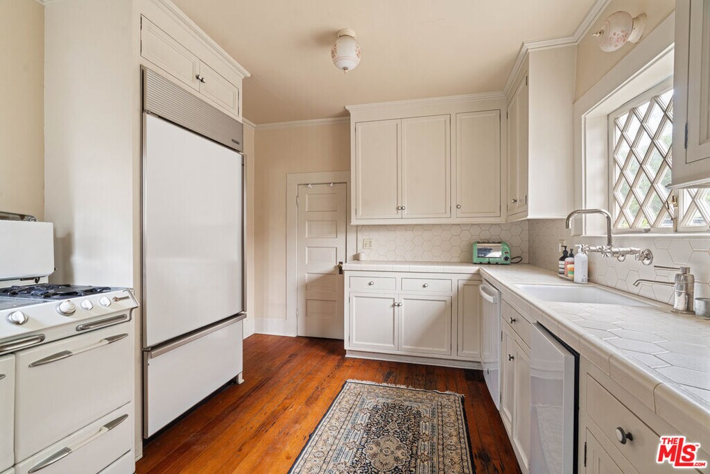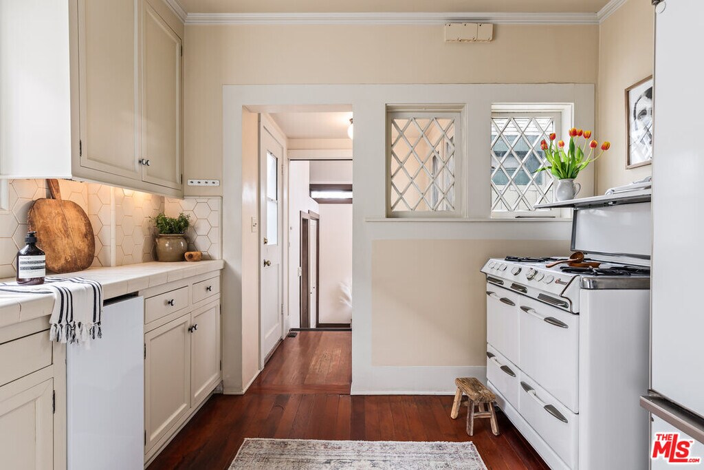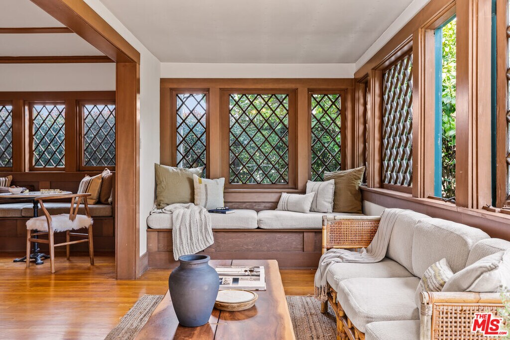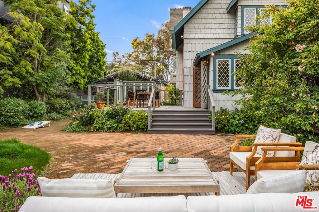 Built in 1910 and set on a double lot, this timeless Venice residence is one of the original homes in the neighborhood and even includes one of the historic boat houses facing the old Grand Canal. Rich in history and original charm, this property offers a rare opportunity to live in one of the most significant and soulful homes in Venice. Situated on a sprawling 5,200+ sqft corner lot just off Abbot Kinney, this exquisite oasis provides both character and comfort in one of the area's most coveted locations. Available furnished (optional) with a **flexible lease term of 6-24 months**, this home offers a truly unique living experience. *Please note: the furniture shown in photos is staged and does not represent the current furnishings in the home.* The main residence features a 4-bedroom, 2-bath layout along with a serene studio space once the original boathouse to the historic canals now reimagined as the perfect guest suite, creative studio, or private office with French doors opening to the lush garden. As you step onto the welcoming front porch and through the double entry doors, you're greeted by a bright, airy living space filled with natural light, intricate woodwork, gleaming hardwood floors, and a cozy fireplace. An adjacent sunroom with built-in seating provides a peaceful nook to relax and unwind. French doors open to a spacious backyard deck that invites you to enjoy the outdoors, while the formal dining room with custom built-ins offers an ideal space for gatherings. The cheerful kitchen is equipped with ample cabinetry, a Sub-Zero refrigerator, and a vintage Merritt O'Keefe stove, blending functionality with vintage charm. Downstairs, the separate studio includes a beautifully tiled bathroom and its own private outdoor area perfect for guests or as a quiet retreat. Upstairs, three light-filled bedrooms offer ample closet space and a serene atmosphere. One of the bedrooms, complete with built-ins, serves beautifully as a home office with direct views of Abbot Kinney. Outside, the expansive garden is a lush sanctuary surrounded by mature greenery and privacy-providing hedges, offering an ideal space to relax in the ocean breeze, entertain friends, or enjoy peaceful solitude under the stars. Perfectly positioned just off Abbot Kinney, this home places you steps away from some of Los Angeles' best coffee shops, restaurants, boutiques, and the iconic Venice Canals and beach. With its historic character, flexible lease options, and unparalleled location, this exceptional property offers the rare chance to experience Venice living at its finest. MLS# 25606911