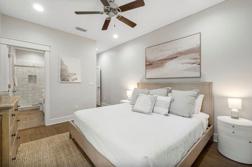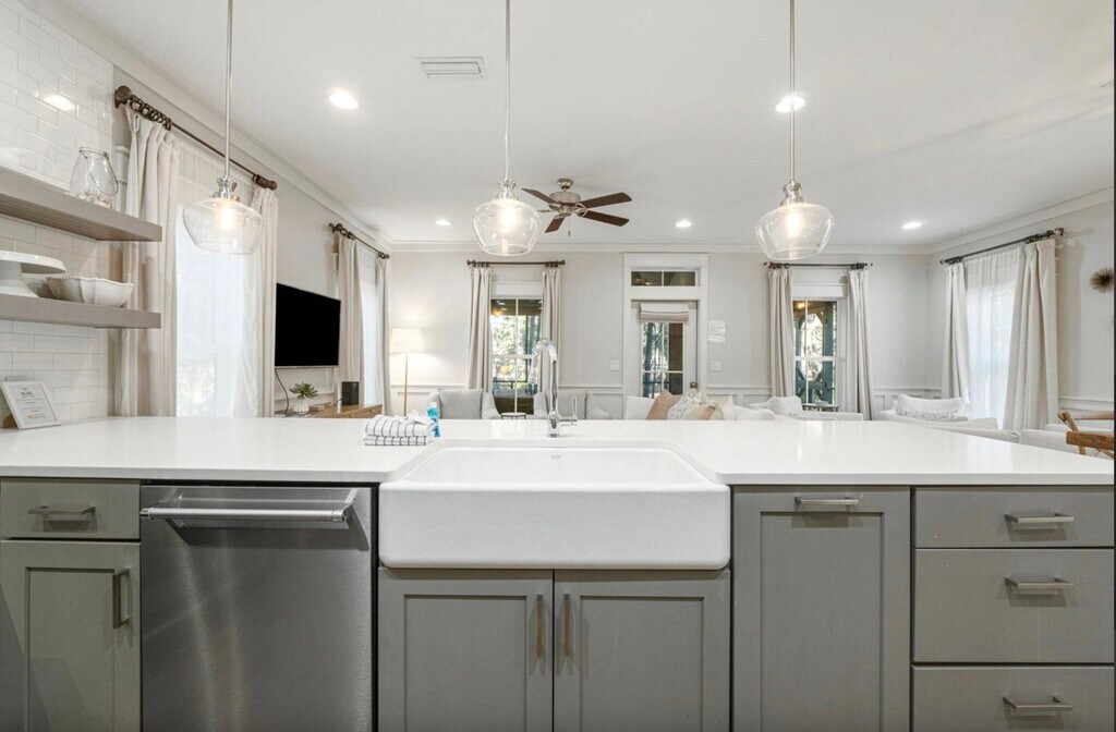 The advertised rate of $15,911/month is the lowest available price, based on a 30 day(s) stay with a move-in date of August 16, 2026. Rates vary depending on the duration of stay, season, and other parameters. For exact pricing and additional pricing components, please visit our website and enter your desired move-in and move-out dates. The rate is applicable when billed upfront; it can be higher if billed in multiple payments. Welcome to Sunshine State of Mind, a spacious and inviting beach retreat in a quiet, heavily treed neighborhood with charming, winding roads in Seacrest, Florida. Feel at home in this beautifully designed home with 4-bedrooms and 4.5-bath, comfortably sleeping up to 18 guests, making it an ideal choice for large families and multi-generational getaways. It is perfectly positioned directly across from the zero-entry community pool and a large green space. This home features a king-size suite with a walk-in shower, ceiling fan, and TV. The spacious, well equipped kitchen has island seating for 6, along with a large dining table seating 8 guests. There is plenty of comfortable seating and a large TV for movie nights, as well as a screened-in porch with ambient lighting. Enjoy two outdoor showers, a fire pit for evening gatherings, a full-size washer and dryer, complimentary high-speed Wi-Fi, and smart TVs throughout. Four bikes are included with every stay for easy exploring. Beach chairs and beach towels are provided, but large groups may wish to bring extras. A selection of beach and pool toys are available for guest use. Sunshine State of Mind enjoys a prime location with easy access to all that 30A has to offer, including boutique shopping, dining, scenic bike paths, and nearby favorites such as Rosemary Beach, Alys Beach, and The Big Chill. The home is conveniently located near quaint shops and popular restaurants. Gated beach access at Gulf Lakes is just a short walk or bike ride away. For guests who love the outdoors, you're close to some of the area's most beautiful natural spaces, including Camp Helen State Park, Grayton Beach State Park, and Deer Lake State Park. Panama City Beach is just 10 minutes away, and Destin attractions are a bit farther east. Pets are not allowed. [SI]