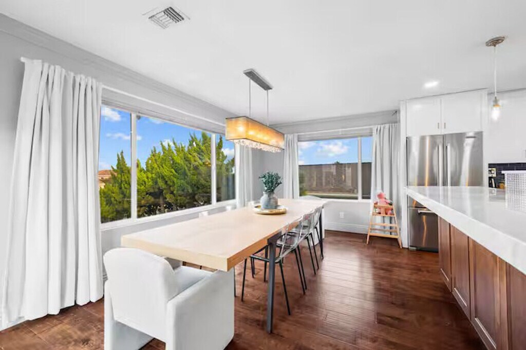 The advertised rate of $24,217/month is the lowest available price, based on a 30 day(s) stay with a move-in date of October 3, 2026. Rates vary depending on the duration of stay, season, and other parameters. For exact pricing and additional pricing components, please visit our website and enter your desired move-in and move-out dates. The rate is applicable when billed upfront; it can be higher if billed in multiple payments. Escape to this private La Jolla oasis and feel at home in this property that's perfect for families, groups, and long-term stays. This property features 4 spacious bedrooms, each offering privacy and room to unwind. You'll find a fully stocked chef’s kitchen made for real meals and long stays, complete with stainless steel appliances, blender, coffee maker, toaster, all essential cookware, and a built-in wine rack. There is a full-size refrigerator plus a secondary smaller fridge. The big, open living room has seating for the whole family and a 75-inch Smart TV. The remote-controlled fireplace adds warmth and ambiance to evenings. The living room opens directly to the spacious backyard, which feels peaceful and welcoming, with multiple patios, a modern outdoor fire feature, bistro lights, and a gas grill. An EV charger is available for a flat fee of $25 per night. Need meal prep, baby gear, a beach wagon, or a rental car? Preferred providers can be provided once booked. Minutes from La Jolla Shores, Windansea Beach, and La Jolla Cove, this property is well-located near UCSD, Torrey Pines, SeaWorld, restaurants, cafés, boutiques, and top attractions. It's in a quiet, walkable neighborhood perfect for morning strolls and evening relaxation. Nearby attractions include Birch Aquarium (2 miles), La Jolla Cove (2 miles), La Jolla Shores Beach (2.5 miles), UCSD (3 miles), Torrey Pines State Reserve (6 miles), Torrey Pines Golf Course (5 miles), San Diego Zoo and Balboa Park (11 miles), Downtown San Diego (12 miles), and San Diego International Airport (13 miles). Quiet hours begin at 10:00 PM, and guests are asked to be respectful of the neighbors. A small device monitors noise and temperature to ensure a comfortable stay and protect the quiet neighborhood. Pets are not allowed on furniture or beds, including the pool area, and must be walked off-property. Any damage caused by pets will be charged to the guest. For undisclosed pets prior to check-in, there is a $250 fee. Only guests listed in the reservation are allowed on the property unless prior approval is given. A maximum of 3 additional visitors are allowed at any time, and all must be approved in advance. Unapproved guests or violations of this policy may result in immediate cancellation of the reservation without refund. If requiring an extended check-out, please contact us for approval. A $100 fee will be charged for every 30 minutes past the agreed check-out time. Both king bedrooms include a dedicated desk, making remote work simple and comfortable. Super-fast Wi-Fi is available throughout the home. Family-friendly amenities include a pack 'n play, high chair, and changing table. [SI]