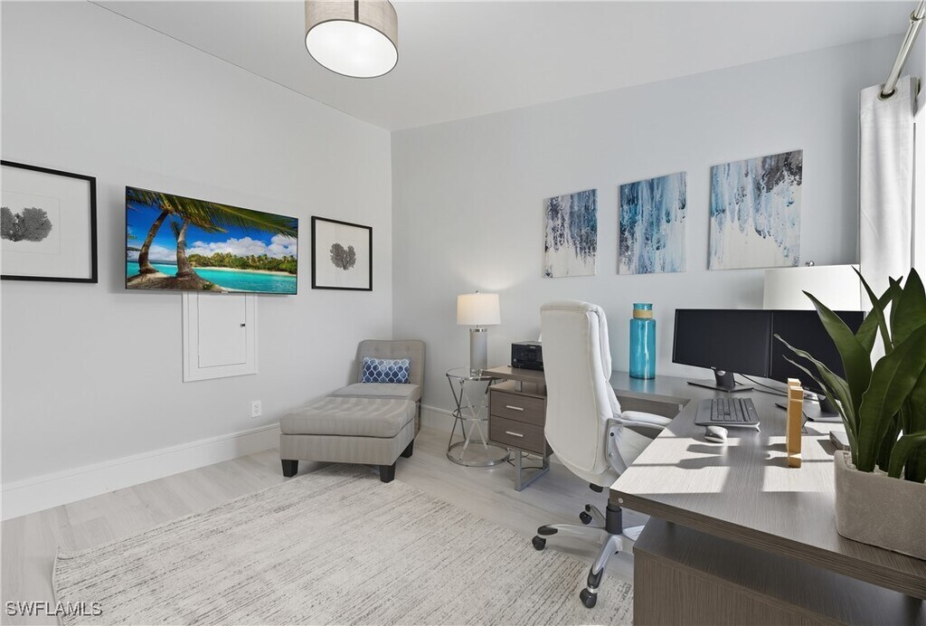 The Strand is one of Naples' most desirable gated communities! Be the first to enjoy this totally remodeled One-of-a-kind property. The owners spared no expense making it Bright and Beautiful. Eastern exposure and terrific golf course & lake vista views impress from this second-floor residence. Furnished in modern chic throughout to offer a comfortable and relaxing vacation experience. This residence boasts soaring ceilings giving the effect of even more spacious & open living area. King bed with TV in the master bedroom,two full beds in the first guest and a queen murphy bed in the office/2nd guest room. The living room offers a sectional sofa and chair,the dining room table seats 6 with additional seating at the banquet in the eat-in kitchen. Amenities in Clubside include a heated pool and social club room. Guests can enjoy the Optional exclusive social amenities The Strand has to offer including a gorgeous 32,000 square foot full service clubhouse with formal and casual dining,main club heated pool and spa,internet communication center with fax service,pro-shop,exercise facility,tennis club,and 24/7 security guarded gated entry.