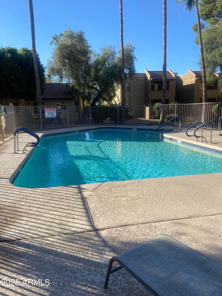 This beautiful,unfurnished 1 bed,1 bath condo is in the very popular Monterra complex in central Scottsdale and is near schools,shopping,golf courses,greenbelt,Chaparral Park and dog park. Complex has a heated pool and spa; small fitness center,built-in BBQ grill and a chiller (instead of a/c) system that is paid for by the owner,which leaves you with just a small electric bill. Energy efficient windows and sliding glass door have been installed. You won't be disappointed!