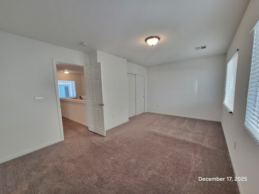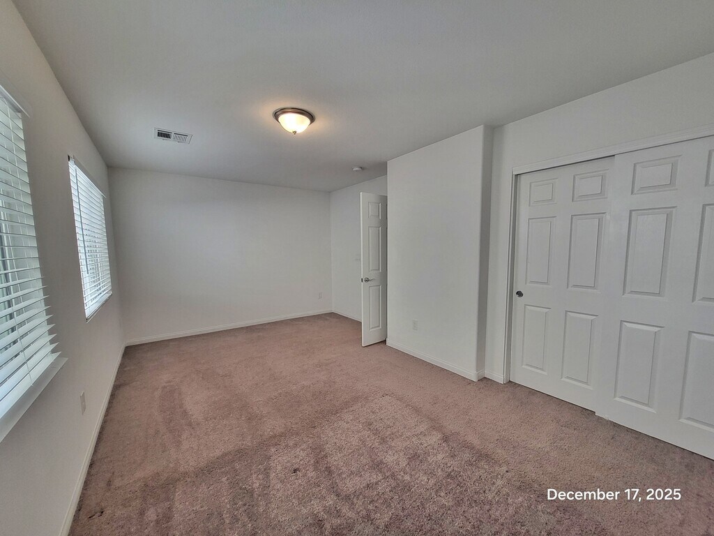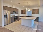 Spacious two-story home with an open-concept floor plan and abundant natural light. Modern kitchen features quartz countertops, stainless steel appliances, dark cabinetry, and a large center island. Upstairs offers a versatile loft, generously sized bedrooms, and a primary suite with dual sinks, walk-in shower, and walk-in closet. Move-in ready with a 2-car garage and low-maintenance desert landscaping.