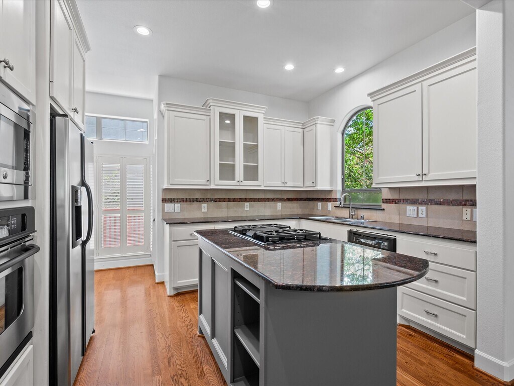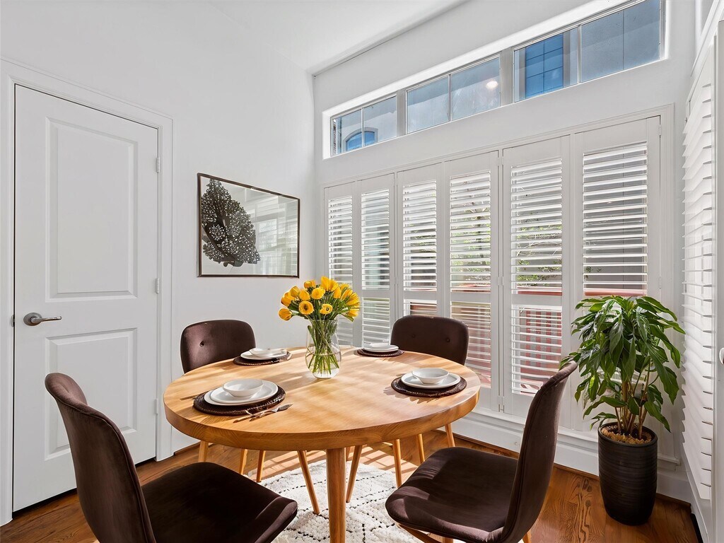 Welcome to 588 Bomar St,a beautifully maintained home in the heart of Montrose—Houston’s most walkable and vibrant neighborhood. Steps from top dining,coffee shops,nightlife,and parks,this home offers both comfort and convenience. Each bedroom includes an ensuite bath,with the spacious primary suite featuring two walk-in closets. Wood floors throughout,tile on the first floor. Enjoy interior shutters on all windows,a large balcony off the kitchen and breakfast area—perfect for morning coffee or tea—and a covered patio off the expansive first-floor bedroom. Recent upgrades include a new A/C unit,fresh interior and deck paint (July 2025),new vent covers,LED lighting,and smoke/CO detectors. Refrigerator,washer,and dryer included. Move-in ready! THIS IS AN ATTACHED SINGLE FAMILY HOME MLS# 64764076