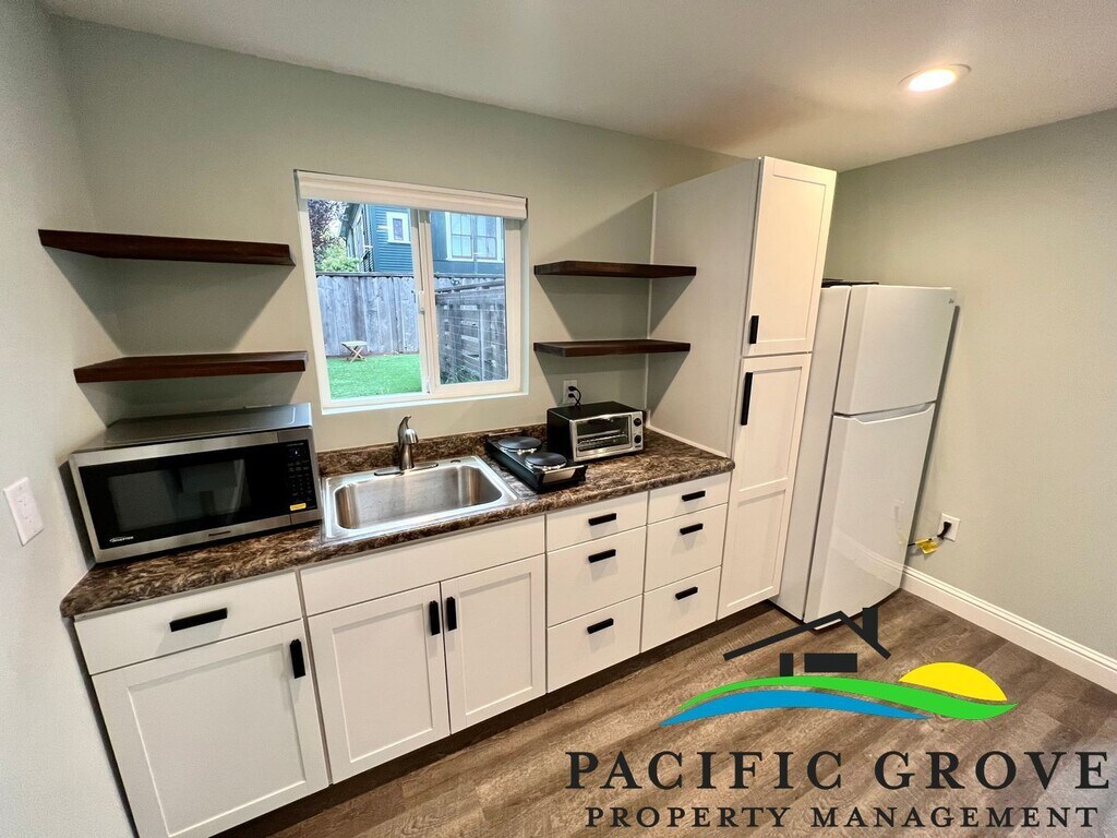 Rent: $2,375.00 Deposit: $2,375.00 Document Preparation Fee: $150.00 Application Fee: $50.00 per applicant (anyone over 18 must apply) Resident Benefit Package: $44.95/month Available Move-in Date: Early October Available to View: By appointment only (unit currently occupied — please do not disturb occupants) For viewing instructions, please call our office at and ask to speak with Chad. Welcome to 588 Junipero Avenue, Suite A, a detached updated studio located in the heart of Pacific Grove. Offering 350 sq. ft. of light-filled living space, this studio provides both comfort and convenience, all within minutes of downtown and the peninsula’s many amenities. Living Area Step inside the front door and enjoy an open floor plan that allows flexibility for a combined bedroom and living room layout. A convenient closet space is located to the left upon entry. Kitchen The modern kitchen features a collapsible breakfast bar/countertop for casual dining. Appliances include: Full-size refrigerator Electric range Microwave and microwave oven Washer/dryer combo Wall heater Bathroom The enclosed, newly updated bathroom includes a shower stall and modern fixtures. Outdoor Features Quaint concrete patio, perfect for outdoor seating, dining, or barbecuing Windows tinted for added privacy and protection Backyard view with natural light Location Highlights Close proximity to downtown Pacific Grove Minutes from Lovers Point, Cannery Row, retail shops, and restaurants Easy access to the area’s beaches and local amenities Additional Features 350 sq. ft. detached studio All utilities included (except cable TV and internet) Street parking available on Junipero and 16th Street No pets. No smoking. NOTE: Once the tenant is placed, the home will be managed by the homeowner.