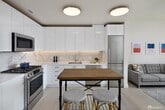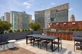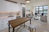 This one Bedroom With Den residence boasts expansive windows with views of Twin Peaks and the City skyline, oak flooring in the living area, plush carpet in the bedroom, stainless steel Bosch appliances including the gas range, custom-designed Quartz countertops, and lacquer cabinets with porcelain tile backsplash. The unique floor plan features 1 Bedroom, 1 Bath + Den perfect for working from home. The bathroom is furnished with porcelain tile flooring and custom-designed floating vanities and stylish cabinets. OneEleven is a luxurious boutique condo complex offering an expansive roof terrace with lounge seating, BBQ Island, a dining area, City skyline views, an exclusive resident lobby with a secure package room, and bike storage. The building is located in the center of SoMa - within walking distance of the Financial District, Union Square, Westfield Mall, Target, and easy access to the Bay Bridge, 101, and 280 Hwys.