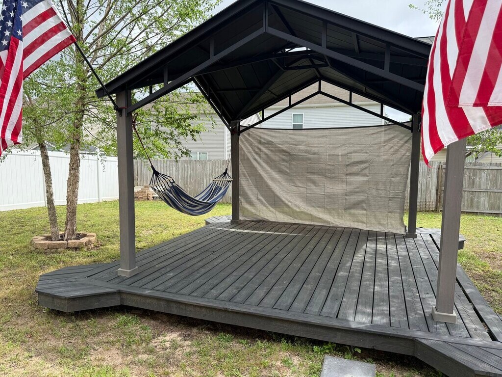 Beautiful 4 bedroom home with fresh paint and new luxury vinyl plank flooring. When you first walk into the home you notice the open great room and kitchen. The kitchen features a large center island, walk in pantry, built in microwave, smooth top stove & dish washer. The home has a 1/2 bathroom downstairs and 2 full bathrooms upstairs with dual vanity sinks. The master bedroom features a large walk in closet, dual vanity sinks, garden tub and a walk in shower. The home is located on a quiet street with a 2 car garage. The backyard is fully fenced in and has a large covered gazebo deck for relaxing or entertaining guests. Property is currently occupied and will be available to show 12/10. NAS Whiting Field - 10 minute drive Publix - 1 minute drive Blackwater Trail - 3 minutes No smoking indoors. Pets allowed on approval with pet fee. One year lease with option to renew.