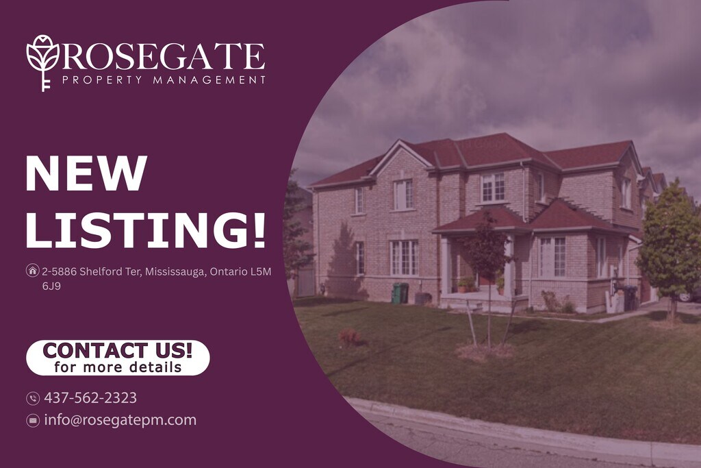 2-Bedroom + Den Corner Unit with Parking in Mississauga Welcome to 2-5886 Shelford Ter, Mississauga — a bright and spacious corner unit apartment offering approximately 800 sq. ft. of thoughtfully designed living space. With 2 bedrooms, 1 den, and 1 bathroom, this home is ideal for professionals, couples, or small families looking for comfort and functionality in a convenient Mississauga location.The open-concept layout features bright living and dining areas, a functional kitchen, and two well-sized bedrooms. The versatile den can be used as a home office, study, or additional sleeping space. Large windows throughout the unit ensure plenty of natural light, creating a warm and welcoming atmosphere.Additional highlights include 1 dedicated parking space, providing everyday convenience. Professionally managed by Rosegate Property Management, this rental is close to schools, parks, shopping, and transit—offering a modern and practical living option in Ontario.