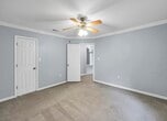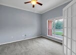 4bd/3bth home with crown molding throughout the home. Living Room has a wood burning fireplace with hearth & decorative accent wall along with 2 sliding doors to lead you to the backyard. Kitchen boasts granite countertops, deep sink, center island, breakfast bar, pantry, nook area & is complete with a new, SMART stove! All Bathrooms have modern vanities & cultured marble countertops. Master Bathroom has 2 large walk-in closets, jet tub, separate shower, and more!. Backyard has a large covered patio & open deck that is perfect for entertaining. There is also a well for your irrigation. AS IS yard building with a loft on site. Home is directly across the street from the Community POOL! NO smoking. 600 minimum FICO credit score required in addition to meeting rental criteria.