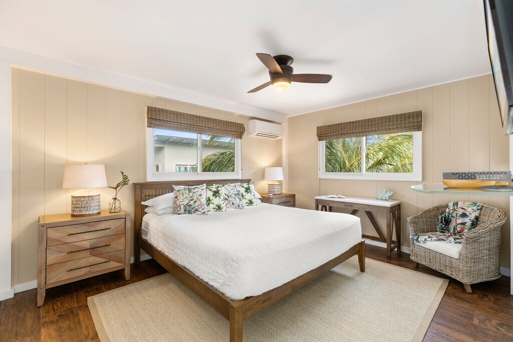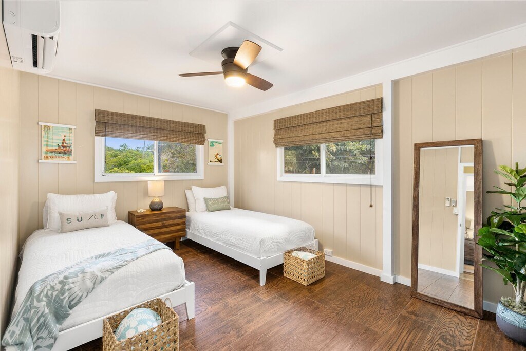 This standalone 3 bedroom, 2 bath home includes split AC's in the bedrooms and living room, full kitchen, garage and plenty of parking in a fully gated property. Fully furnished inside and out with bonus room downstairs. Two outdoor lanai areas and peek a boo views of the ocean. Conveniently located near Ehukai Beach Park and across from the elementary school. Bike to local restaurants and businesses. Direct access to Ehukai and Pipeline. No smoking on property. Deposit required, renters to pay utilities, base rent + GET. 6 month lease preferred. Text for a showing.
