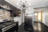 Experience the height of refined living in this meticulously renovated first-floor unit, where modern sophistication meets effortless comfort. This open concept large four-bedroom, two-bathroom home has been reimagined with a curated matte black and gold design palette. Complemented by brand-new radiant heated-flooring & designer lighting. The open concept kitchen and spa-like bathrooms showcase premium finishes, while the inclusion of an in-unit washer and dryer ensures seamless daily convenience. Nestled on a tranquil residential block with easy parking and superb proximity to bus and rail links, the home's crowning jewel is its private backyard sanctuary. Enclosed by a secure privacy fence and featuring a spacious deck and a charming gazebo with ambient lighting, this serene outdoor retreat provides an exclusive space for sophisticated entertaining or quiet relaxation under the stars. Tenant requirements: income and credit verification required.