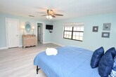 Welcome to your stunning saltwater heated pool home in the desirable Palm Harbor subdivision. This beautiful 2-bedroom plus den and 3-bathroom property exudes a coastal feeling that will make you feel right at home. As you enter, you'll be greeted by a cozy living room that seamlessly connects to a dining area overlooking the spacious lanai. The large primary bedroom features a walk-in closet, and the home includes a completely fenced yard for added privacy and security. Step outside to discover the large screened-in pool area, perfect for entertaining friends and family. The adjoining bathroom features a stylish all-tile walk-in shower and a storage closet, adding convenience to your poolside enjoyment. The well-equipped kitchen with granite countertops and ample cabinetry is perfect for preparing meals and entertaining. Pets are welcome with a fee of $100 per pet. The pool can be heated for an additional $50 daily or $287 weekly, or $200 weekly for multi-week stays. Secure off-site parking for trailers or RVs is available approximately 7-10 miles from the property for $25 per day. Located just minutes from the beach and surrounded by miles of walking and biking trails, this home offers easy access to kayaking, boating, and local shopping and dining options. Palm Harbor is a wonderful, quiet family neighborhood, though it is recommended to have a vehicle as there is no public transportation nearby. Quiet hours are between 22:00 and 7:00. Due to city regulations, trailers and RVs are not permitted to be parked at any city properties, and parking on the lawn or city swales is strictly prohibited. All vehicles must be parked in the driveway only. If you plan to bring a trailer or RV, please let us know prior to your arrival so we can reserve a space for you. Registration Number: 28--5 [SI]