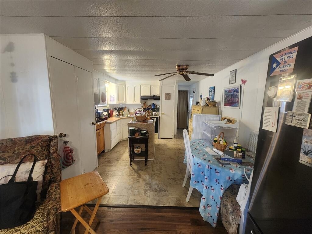 Homeowners association dues are included in the monthly rent. This fully furnished home is ready for you to enjoy beautiful Florida days. The owner will consider selling the property furnished for only $16,000.00. Discover the serenity of a lakeside community in this 2-bedroom,1.5-bathroom prefabricated home,located in the heart of TIKI VILLAGE,a 55+ community. This property features private lake access with a dock and boat ramp,along with excellent amenities and a vibrant social life. The home boasts a spacious living area with modern vinyl plank flooring. Enjoy the Florida sunshine from the large,screened-in side deck. A laundry room with a washer and dryer is also included. This versatile space not only expands your living area but also provides a peaceful haven for relaxation and rejuvenation. Tiki Village offers a well-equipped clubhouse,ideal for hosting memorable gatherings. The land payment is covered by the landlord and includes essential services such as common area maintenance,trash collection,and water and sewer services. Experience the charm of lakeside living at its finest: schedule your private tour today! Contact us now to take advantage of this magnificent opportunity to acquire your own piece of paradise. All information is deemed reliable; buyer verification is required. MLS# OM712152