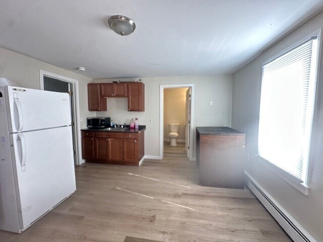 This sunlit 3 bedrooms apartment features an open living/dining flow that’s perfect for autumn movie nights,with wood-look floors and neutral walls that pair beautifully with seasonal décor. The eat-in kitchen offers warm wood cabinetry,a black range/oven,and a white refrigerator—everything you need for simmering soups and holiday baking. Baseboard heating helps keep things toasty as the weather cools. Schedule your showing before it's too late. MLS# 73442528