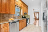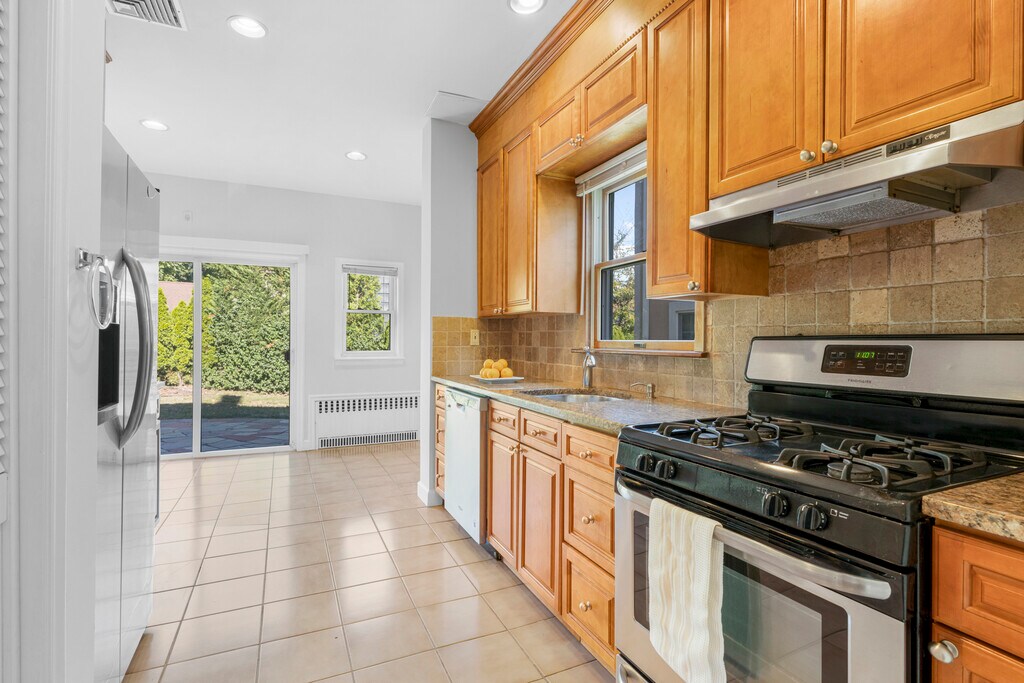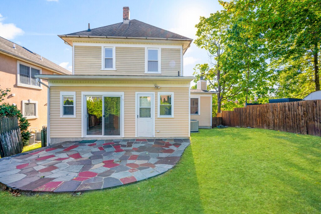 Charming and versatile, this two-bedroom home truly lives like a four-bedroom, thanks to a finished attic and an additional den that provide wonderful flexibility for today's lifestyle. All of the rooms are well proportioned, offering comfortable living and entertaining spaces. The inviting family room is anchored by a cozy wood-burning fireplace, while the eat-in kitchen features granite countertops and convenient pantry space. Step outside to a lovely backyard with a patio, perfect for relaxing or entertaining. Ideally located, this home is just a short walk to the train station, town, restaurants, shops, schools, and houses of worship. In this house you will find the perfect combination of comfort and convenience.