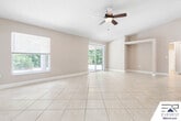 THIS 3-BED, 2-BATH HOME WITH A DEN OFFERS A GENEROUS, OPEN LAYOUT WITH TILE AND WOOD FLOORING THROUGHOUT. THE KITCHEN FEATURES LIKE-NEW APPLIANCES, A GLASS BACKSPLASH, ISLAND, BAR COUNTER, AND BREAKFAST NOOK—PERFECT FOR ENTERTAINING OR CASUAL DINING. RELAX IN THE LIVING ROOM OR THE SPACIOUS FAMILY ROOM WITH VAULTED CEILINGS, ENTERTAINMENT CENTER ALCOVE, AND SLIDING GLASS DOORS LEADING TO A COVERED PORCH AND PARK-LIKE BACKYARD. THE ENCLOSED DEN WITH FRENCH DOUBLE DOORS PROVIDES A FLEXIBLE SPACE FOR AN OFFICE OR MEDIA ROOM. THE SPLIT-BEDROOM PLAN ENSURES PRIVACY, WITH A MASTER SUITE BOASTING A WALK-IN SHOWER, ROMAN TUB, AND LARGE WALK-IN CLOSET. ADDITIONAL HIGHLIGHTS INCLUDE 2,698 TOTAL SQ FT, 2,026 LIVABLE SQ FT, A SEPARATE LAUNDRY ROOM, TWO-CAR GARAGE, AND A HUGE CIRCULAR DRIVEWAY. LOCATED IN THE POPULAR LEHIGH WOODS NEIGHBORHOOD, THIS HOME OFFERS EASY ACCESS TO SCHOOLS, SHOPPING, TOWN CENTER, BEACHES, MAJOR HIGHWAYS, DAYTONA BEACH, AND HISTORIC ST. AUGUSTINE. SOLID LANDLORD. AVAILABLE FOR IMMEDIATE MOVE-IN. $2050 ON 3-YEAR LEASE $2150 ON 2-YEAR LEASE $2250 ON 1-YEAR LEASE