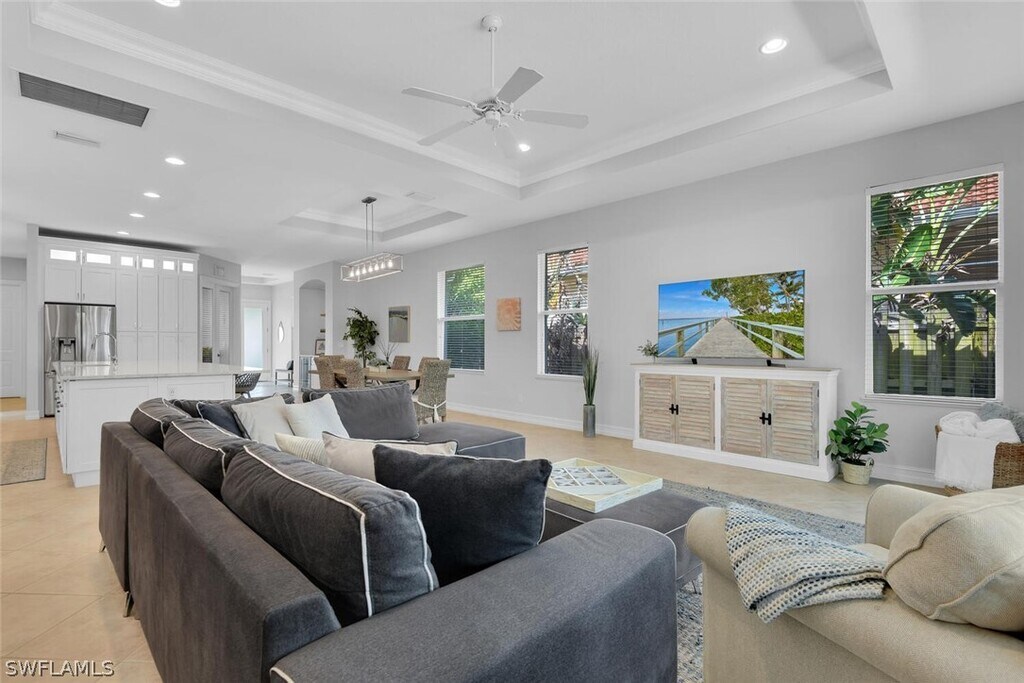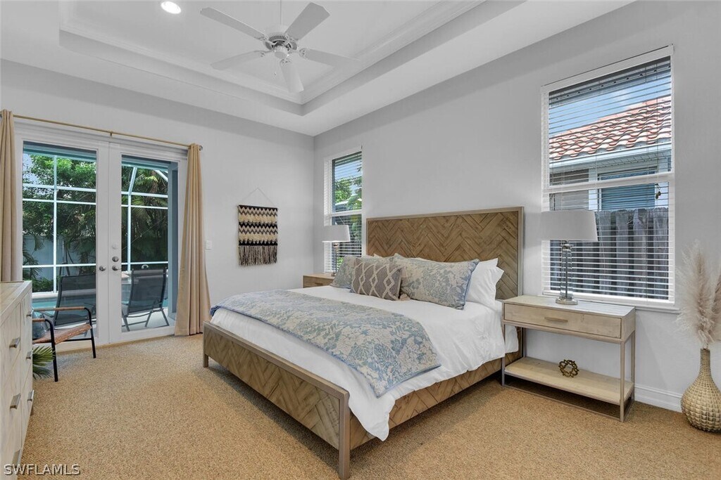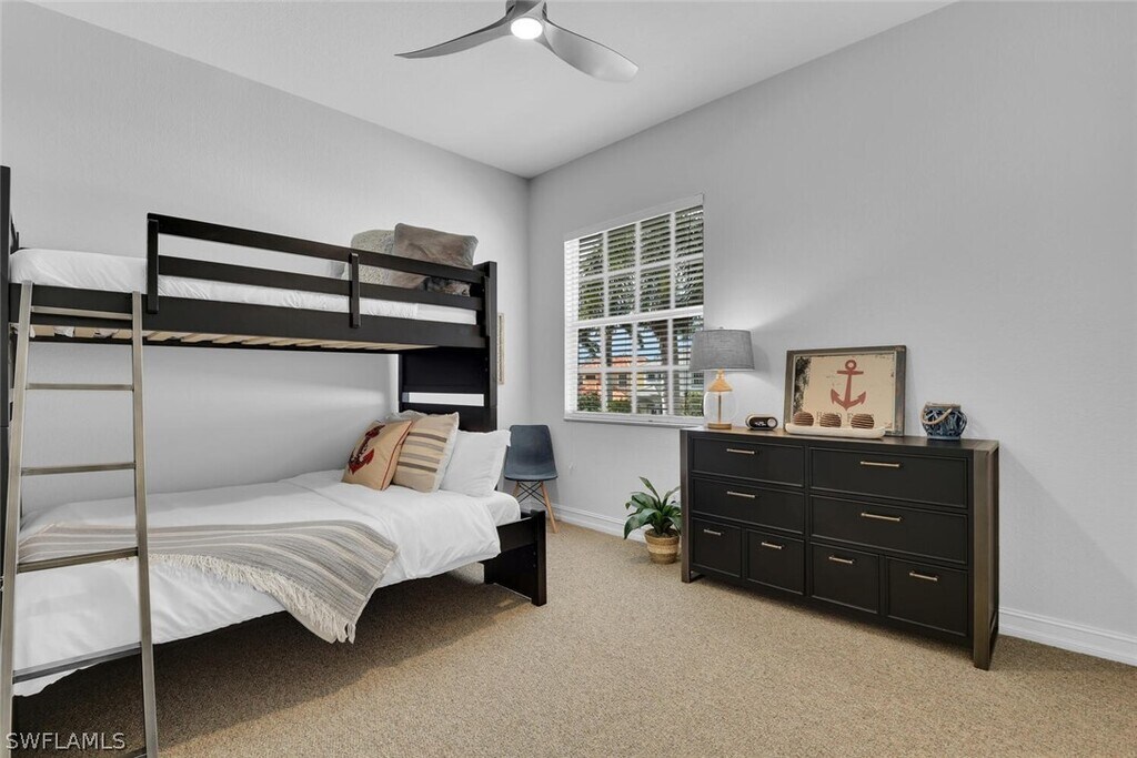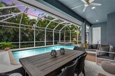 Ravello by the Beach is ideally located on one of the most desirable blocks of the Vanderbilt Beach/Naples Park neighborhood,offering access to pristine Delnor Wiggins State Park Beach within less than a mile’s walk! The large contemporary style home has plenty of room for families between a spacious open concept lower level and 4 bedrooms plus a den/office with a daybed. The screened lanai has all the outdoor amenities you seek including a covered area with outdoor lounge furniture and a dining table and a heated swimming pool with waterfall hot tub. The backyard is fully fenced and accented with lush green landscaping lending a tropical feel. Heading back inside,on the ground level,find a large open kitchen with an island,a dining table that seats 6,living room with a sectional sofa overlooking the pool,a den/office with twin bed,and the primary suite with a king bed and large bathroom. Upstairs,there are 3 guest bedrooms,2 bathrooms,for total sleeping capacity of up to 11 people (please note multiple bunk beds). A guest half bathroom and proper laundry room are also located on the ground floor for comfort and convenience. In addition to the fantastic beach proximity,the location offers access to tennis,racquetball and basketball courts just a short ride away (1.5 miles) on Vanderbilt Beach Road at Pelican Bay Community Park and outdoor shopping,dining and nightlife center Mercato (which has a Whole Foods!),under 2 miles from the house. The Naples Park neighborhood is surrounded by great restaurants and resorts including the Ritz Carlton Naples. Escape to Bluebill by the Beach for the ultimate family retreat under the Naples sun! Please note: the garage is used for storage and will not accommodate vehicles. The long driveway has plenty space for multiple vehicles.