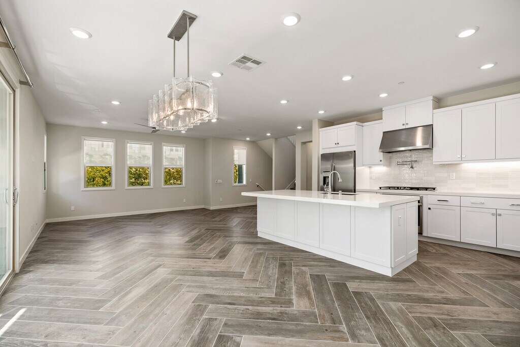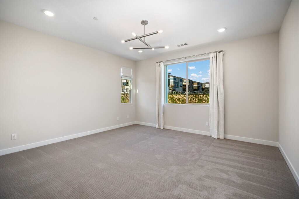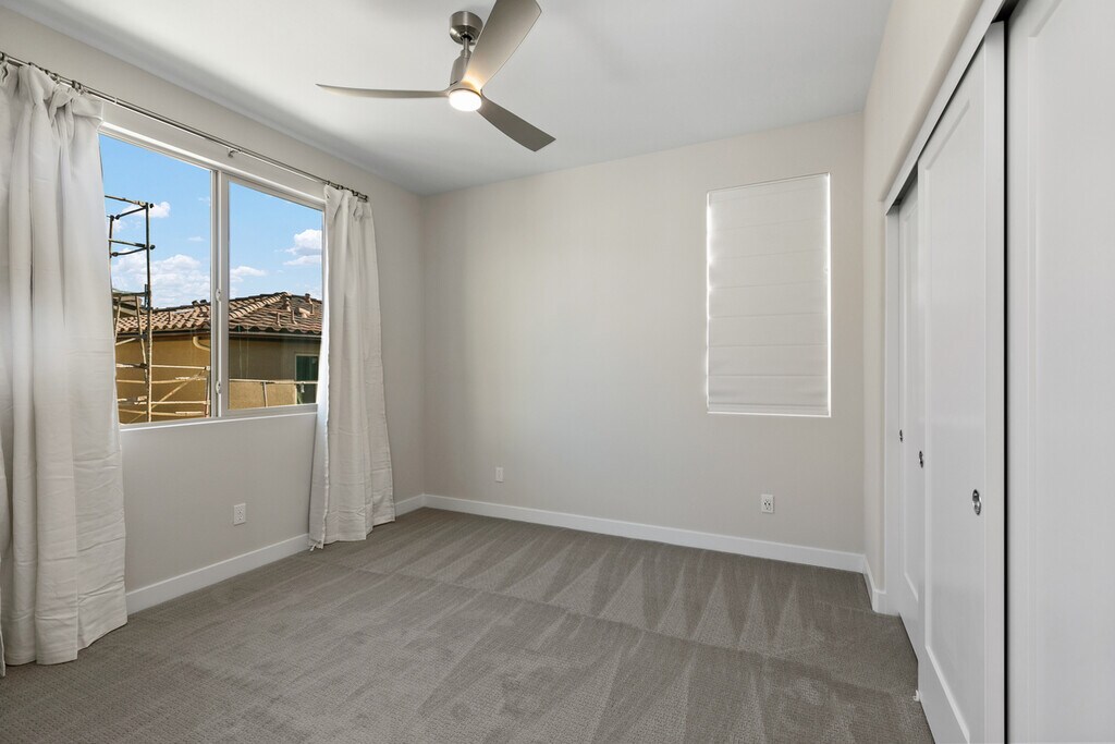 Please do not disturb tenant as the home is still occupied. Viewing tours beginning 11-16 and property will be available for occupancy by 11-22-25. Resort style living in the high-end community of Serrano Summit with amazing kid's parks, pickle ball courts, must see resort-style pools w/cabanas and club house for you and your family to enjoy. New construction was completed in November 2021 makes this home only 4 years old. Complete with designer flooring, custom window coverings, ceiling fans and custom lights in this highly upgraded home. This detached 2727 square foot, 4 bedroom, 4 full bathroom home has a great layout complete with a large home office, great room, dining room, custom gourmet kitchen. Second story main room with 3 door slider leading to an outdoor deck is an entertainer's delight. Outside there is a private yard with custom hardscape/landscape and two fountains in the rear of the home leading to a beautiful oversized front entrance. This detached location is at the street end with no home on the north side. Peek-abo-views from several windows/rooms of mountain range and city lights. Attached two car garage. This location is close to the Irvine Spectrum and Irvine technology work center, Great Park and numerous convenient shopping centers. The floor plan is ideal for multi-generational living with a large bedroom / bathroom on the first floor, one additional bedroom / bathroom on the second floor and on the 3rd floor owner's suite with a grand master bathroom and walk-in closet, 4th bedroom with ensuite bathroom and a separate large laundry room. Finally, the home is complete with a full technology package (see details attached) including the complete Ring brand system and new solar system in the home. Included pictures are of the actual home and of the custom flooring, carpet, tile, fans, lighting etc.
