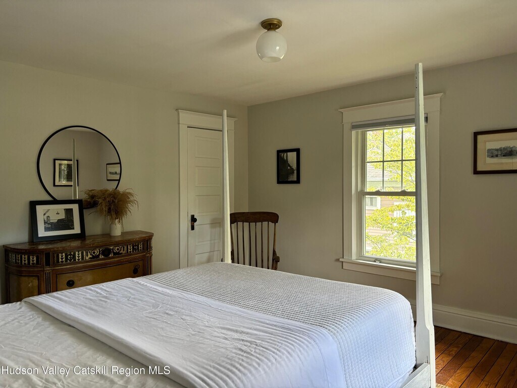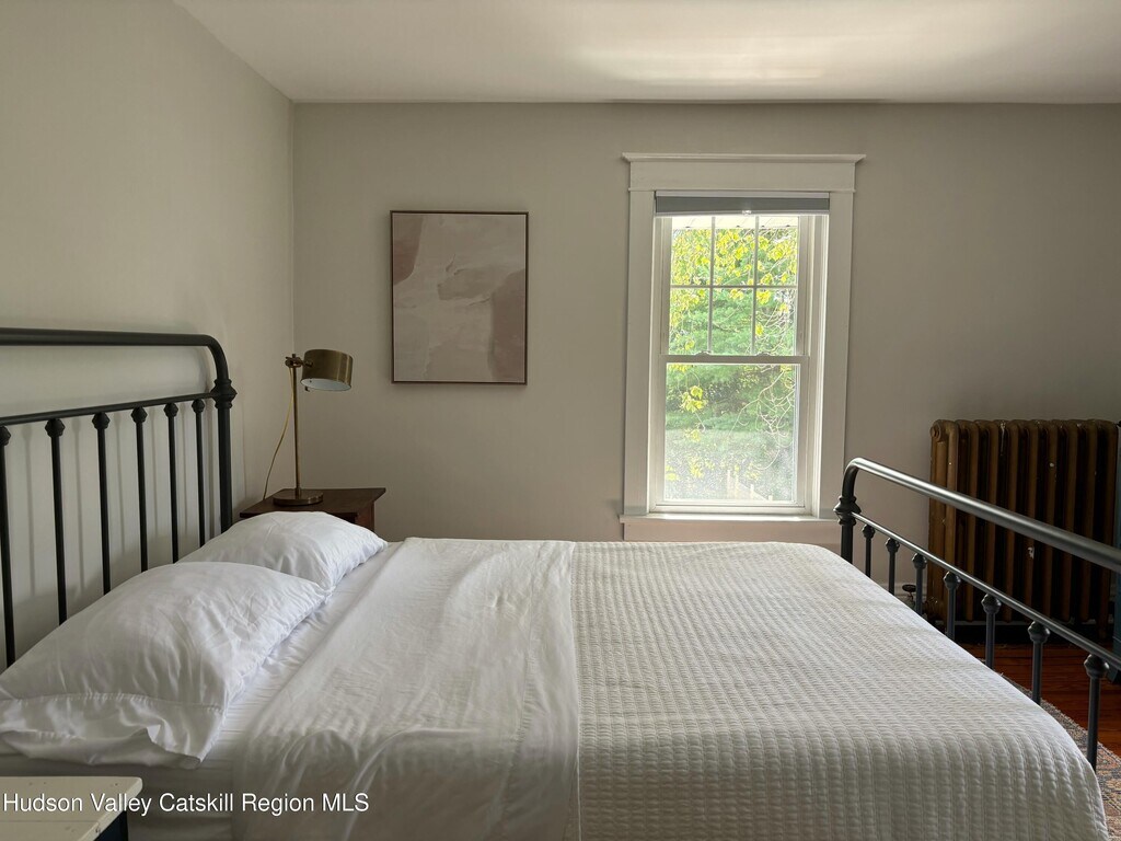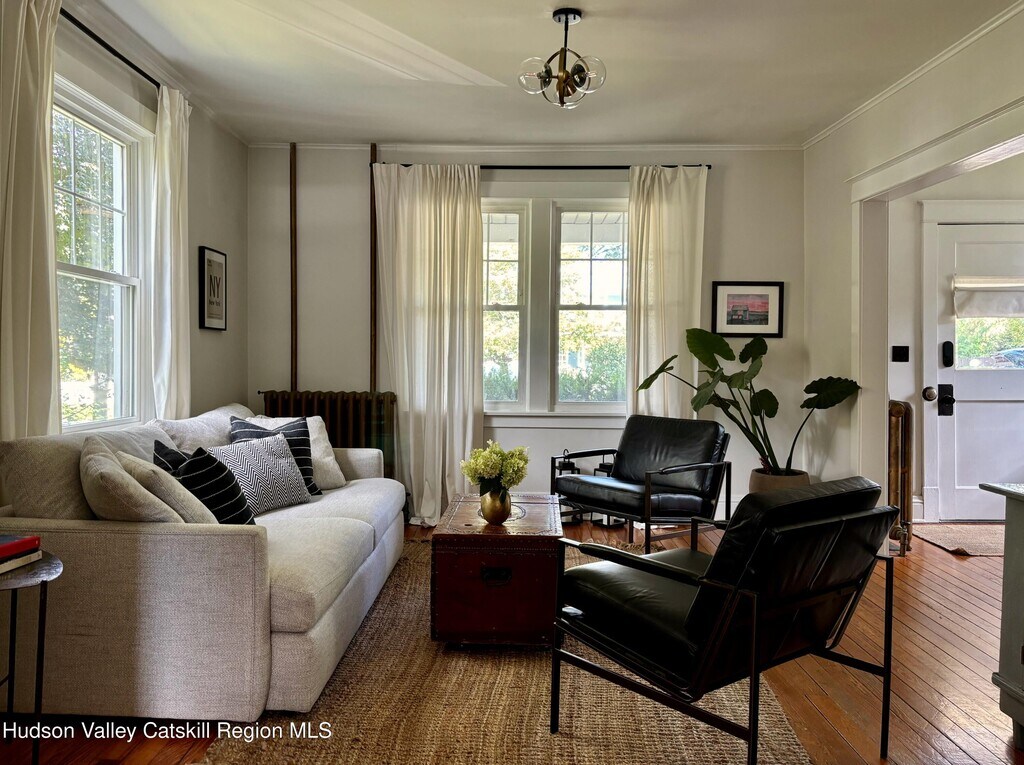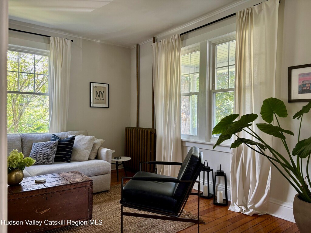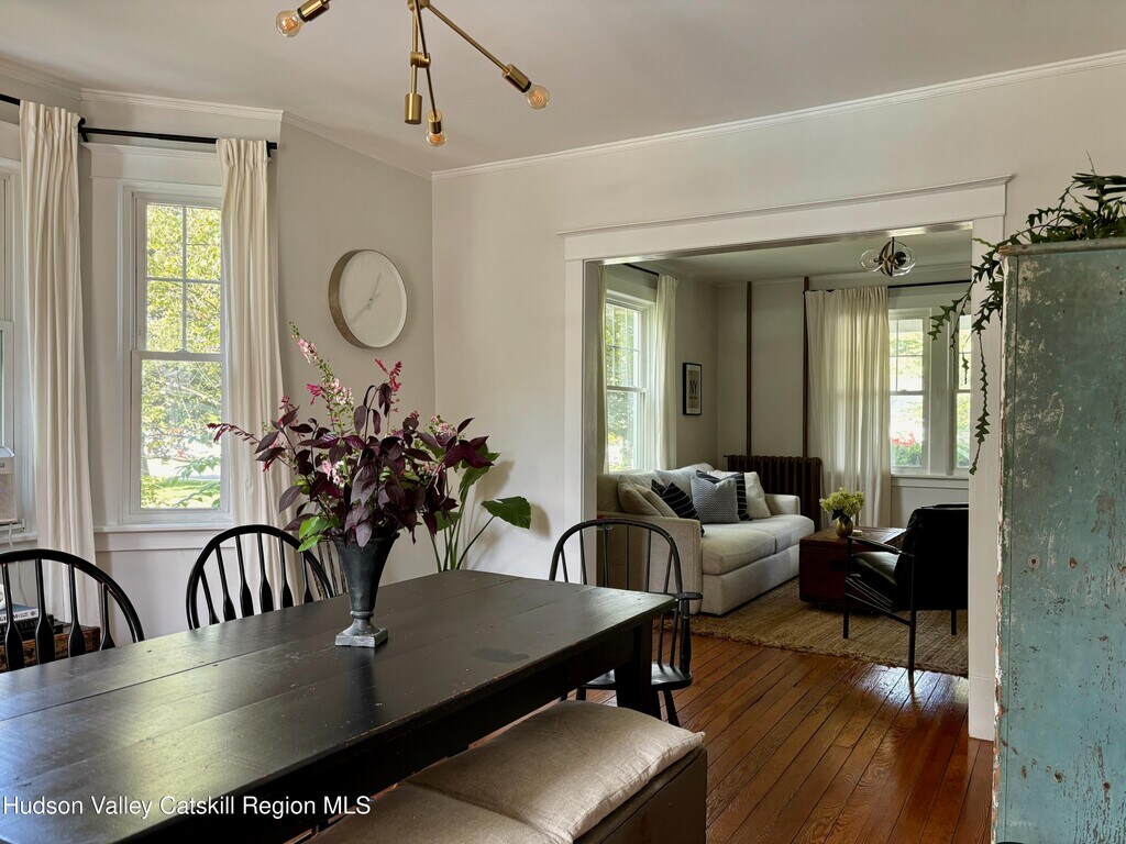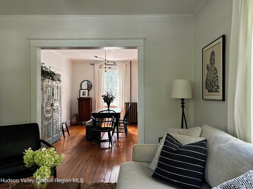 Built in 1920 and nestled among some of Claverack's grand historic estates,this charming home on a 1/4 acre lot offers the perfect blend of vintage character and modern amenities. The light-filled interior features soaring 9-foot ceilings and an abundance of natural light throughout. A gracious front porch sets the tone for this welcoming home. The well-proportioned floor plan flows seamlessly from the large open foyer with a powder room into generous living and dining rooms,both oriented toward the heated swimming pool and lovely back yard. The kitchen,positioned off the dining room,opens to both three season room and deck,creating effortless indoor-outdoor entertaining possibilities. The second floor has three bedrooms,including a primary suite with en-suite bath. Practical amenities include a full basement,a substantial one-car garage and an advanced solar battery backup system that automatically engages during outages. The landscaped grounds center around the heated swimming pool,complemented by an iron fire pit for evening gatherings. The outdoor spaces feel both private and expansive,ideal for both intimate relaxation and larger entertaining. Claverack's Churchtown neighborhood provides an enviable location - minutes from Hudson's cultural attractions and Amtrak station,steps from the acclaimed Klocke Estate Distillery,and just 20 minutes to Catamount Ski Mountain and the broader Berkshires region. This property represents a rare opportunity to own within Claverack's historic fabric while enjoying refined modern comfort and convenience.