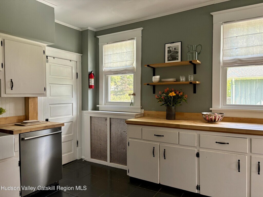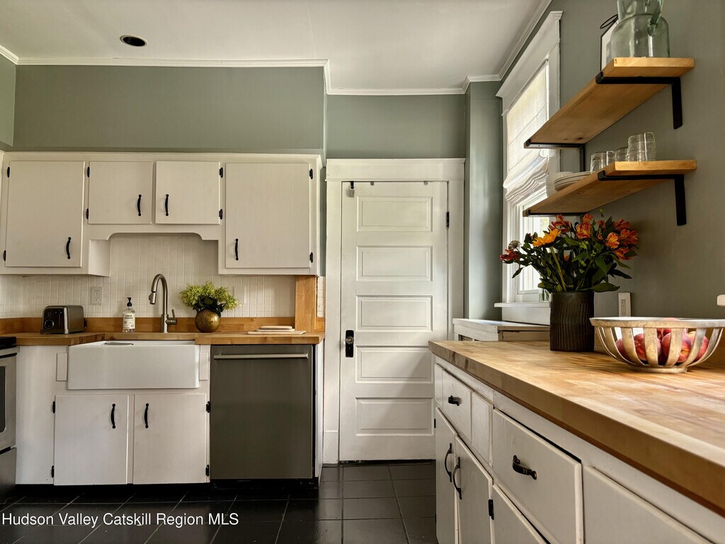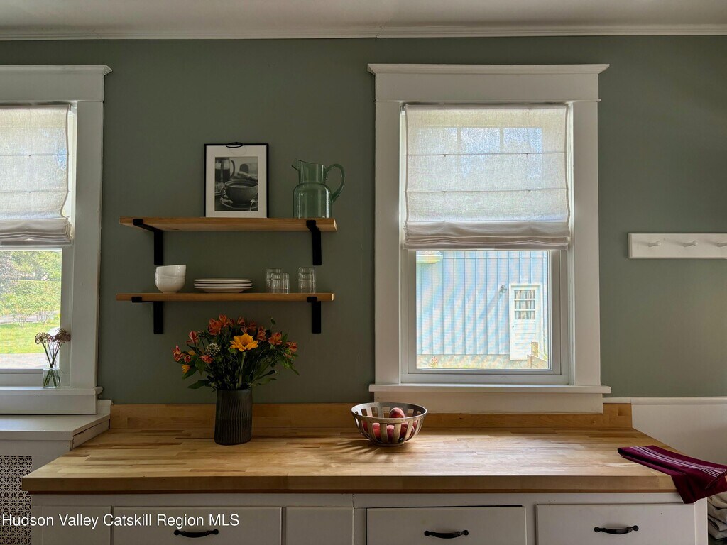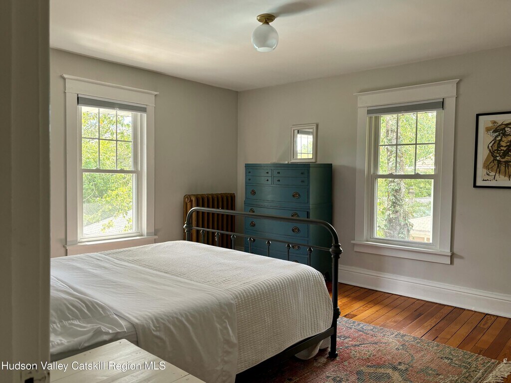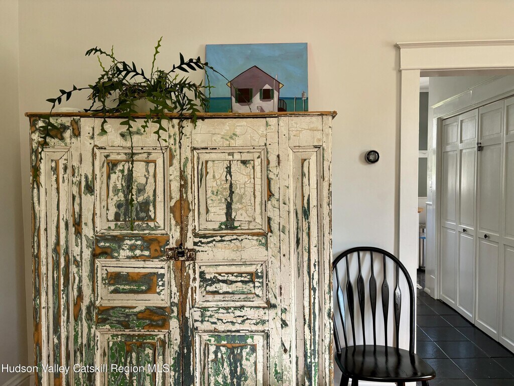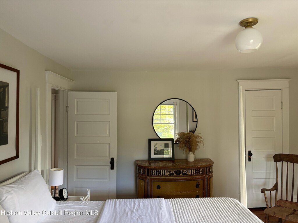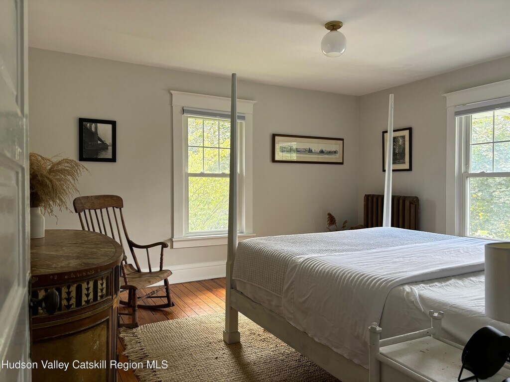 Built in 1920 and nestled among some of Claverack's grand historic estates,this charming home on a 1/4 acre lot offers the perfect blend of vintage character and modern amenities. The light-filled interior features soaring 9-foot ceilings and an abundance of natural light throughout. A gracious front porch sets the tone for this welcoming home. The well-proportioned floor plan flows seamlessly from the large open foyer with a powder room into generous living and dining rooms,both oriented toward the heated swimming pool and lovely back yard. The kitchen,positioned off the dining room,opens to both three season room and deck,creating effortless indoor-outdoor entertaining possibilities. The second floor has three bedrooms,including a primary suite with en-suite bath. Practical amenities include a full basement,a substantial one-car garage and an advanced solar battery backup system that automatically engages during outages. The landscaped grounds center around the heated swimming pool,complemented by an iron fire pit for evening gatherings. The outdoor spaces feel both private and expansive,ideal for both intimate relaxation and larger entertaining. Claverack's Churchtown neighborhood provides an enviable location - minutes from Hudson's cultural attractions and Amtrak station,steps from the acclaimed Klocke Estate Distillery,and just 20 minutes to Catamount Ski Mountain and the broader Berkshires region. This property represents a rare opportunity to own within Claverack's historic fabric while enjoying refined modern comfort and convenience.