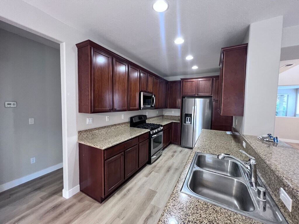 4 Bedrooms. 3 Bathrooms. 3 Car Garage. Rent $3,400, Deposit $3,390. 2,361 sq. ft. Includes fridge, D/W, gas range, microwave, W/D hook-ups, A/C, F/P and double pane windows. Two pets of 40 lbs. or under, upon approval, with an additional security deposit of $500 per pet. This SPECTACULAR 4-bedroom, 3 bathroom 2-story home is TOTALLY REMODELED & SHOWS LIKE BRAND NEW is located in a very desirable area called Curti Ranch in Southeast Suburban Reno. Upgrades include beautiful newer LUXURY VINYL PLANK FLOORING that looks exactly like hardwood but wears better and is water resistant throughout, newer 2-tone paint with a designer color on the walls offset by white baseboards throughout and newer LED light fixtures throughout. The floor plan is open with the GOURMET KITCHEN that has solid granite countertops, plenty of cabinet space, stainless steel appliances, a 5-burner gas stove, an island with a sink and breakfast bar plus a breakfast nook merging as one with the large family room that features a gas log fireplace. The spacious master suite has a large master bedroom with cathedral ceilings and ceiling fan; a large master bathroom with a garden tub, a separate shower, a raised vanity with dual sinks plus a California Style walk-in closet with custom made shelving and dividers. Other features include a downstairs bedroom adjacent to a full bathroom that would be perfect as an office, guest room or teen/in-law quarters; a large separate living room and formal dining room; 3 good sized secondary bedrooms; high ceilings throughout; lots of light giving windows throughout and a finished 3-car tandem garage. Outback you will find a large TRULY REMARKABLE BACKYARD with a large covered paver stone patio, the ULTIMATE IN PRIVACY, an eye-catching waterfall, rose bushes, 2 raised garden beds plus fruit trees. Last but not least is the fact that you are close to great schools, the Shayden Summit Reno plus lots of other shopping, restaurants, a luxury movie theater, the SouthEast Connector, Virginia City, Carson City, Mt. Rose Ski Resort plus Lake Tahoe while still being just minutes from Reno via Interstate 580. Landscaping is provided by the owner. Tenant pays G, E, W, T, & S. 1 year lease.