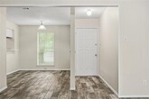 Located on a generous corner lot, this 3-bedroom, 2-bath home offers a functional open layout and recent interior updates. The living room features vaulted ceilings and a striking stone wood-burning fireplace, creating a warm and inviting space. Updates include fresh neutral paint, wood-look tile flooring throughout, and updated ceiling fans. The spacious eat-in kitchen provides plenty of cabinetry and flows easily into the main living area. A split bedroom design allows for added privacy in the primary suite, which enjoys abundant natural light. The home also includes a full-size utility room and a side-entry two-car garage. Step outside to a large fenced backyard ideal for relaxing or entertaining. Conveniently located near major highways with easy access to shopping, dining, and everyday amenities in an established neighborhood.