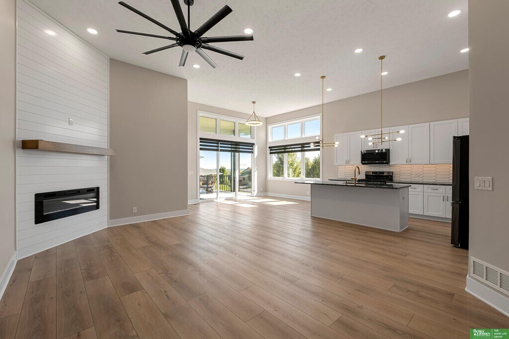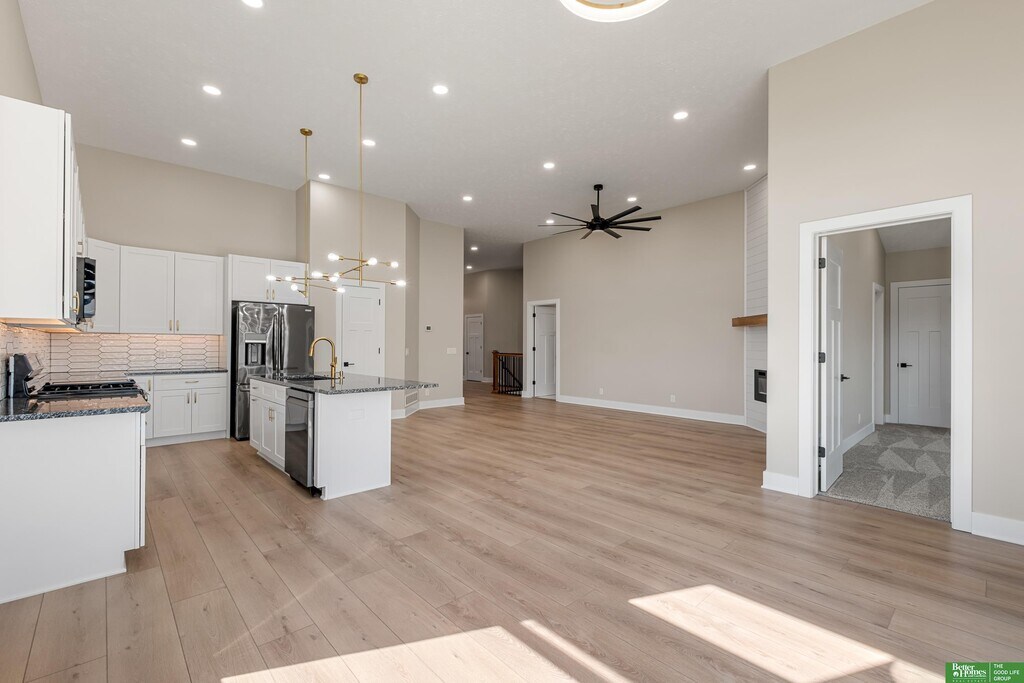 Jake Romero, M: , , - Brand new Copper Ridge townhome in a serene location pairs luxury finishes with low maintenance living. The main level features an airy open plan under 12' ceilings, anchored by a floor to ceiling shiplap fireplace, with LVP flooring, custom windows, and a gourmet kitchen. The primary suite includes a spa like bath with dual sink vanity, tiled walk in shower, jetted tub, and private access to the covered composite deck. Main floor laundry adds everyday convenience. Never occupied and move in ready, the home offers modern appliances, LED lighting, and a stylish backsplash. The finished daylight lower level extends the space with a large great room and wet bar, two bedrooms, a bath, and generous storage. Premium finishes throughout balance elegance and function. HOA covers lawn care, snow removal, trash service and maintenance for easy living. AMA. Agent has Equity.